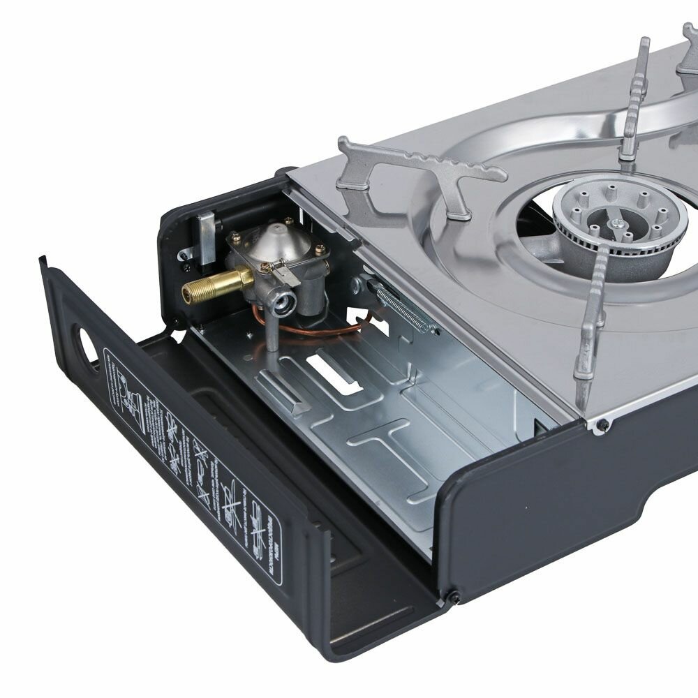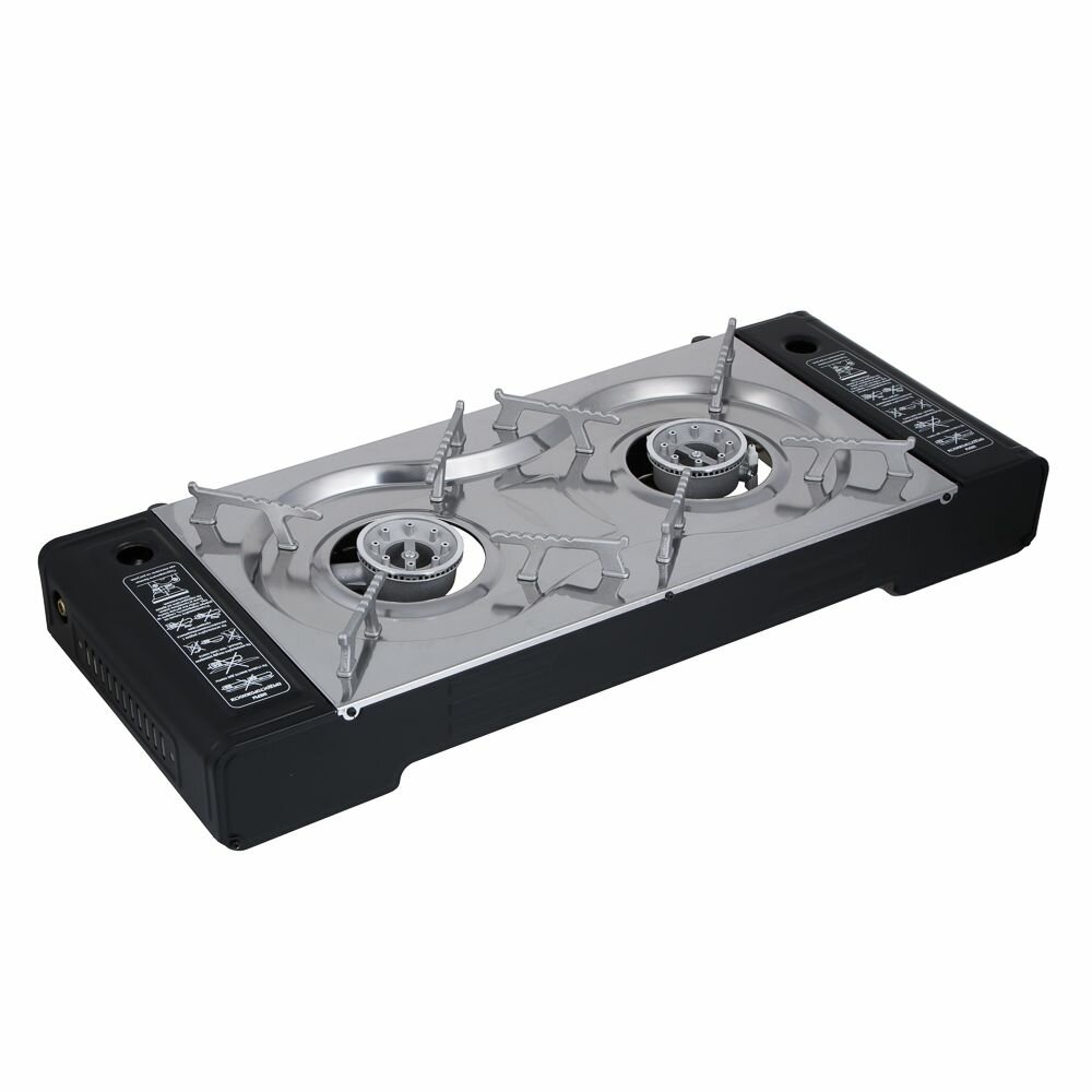 | Комплектация | Плитка газовая двухкомфорочная портативная с переходником 63х10,5х27,5 см Кейс |
