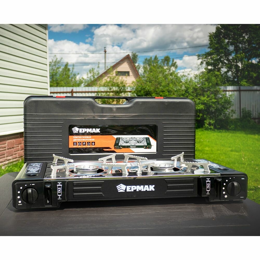 Ниже Вы можете прочитать отзывы на Плитка газовая двухкомфорочная портативная с переходником ермак, 63х10,5х27,5см, в кейсе, ознакомится с подробными характеристиками, посмотреть интересные обзоры и фотографии на Плитка газовая двухкомфорочная портативная с переходником ермак, 63х10,5х27,5см, в кейсе.