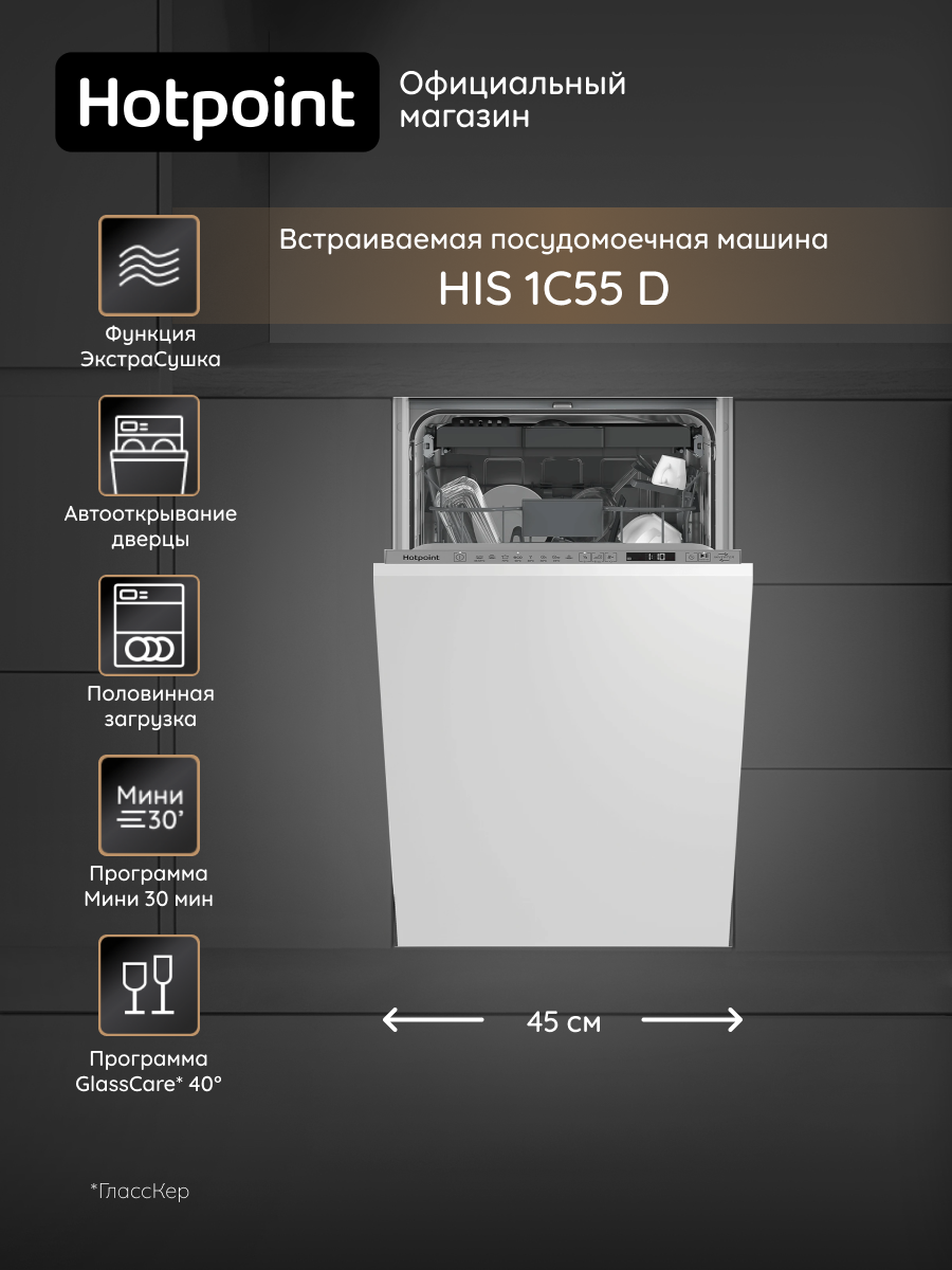 Встраиваемая посудомоечная машина Hotpoint HIS 1C55 D, 45 см, белый интересное: