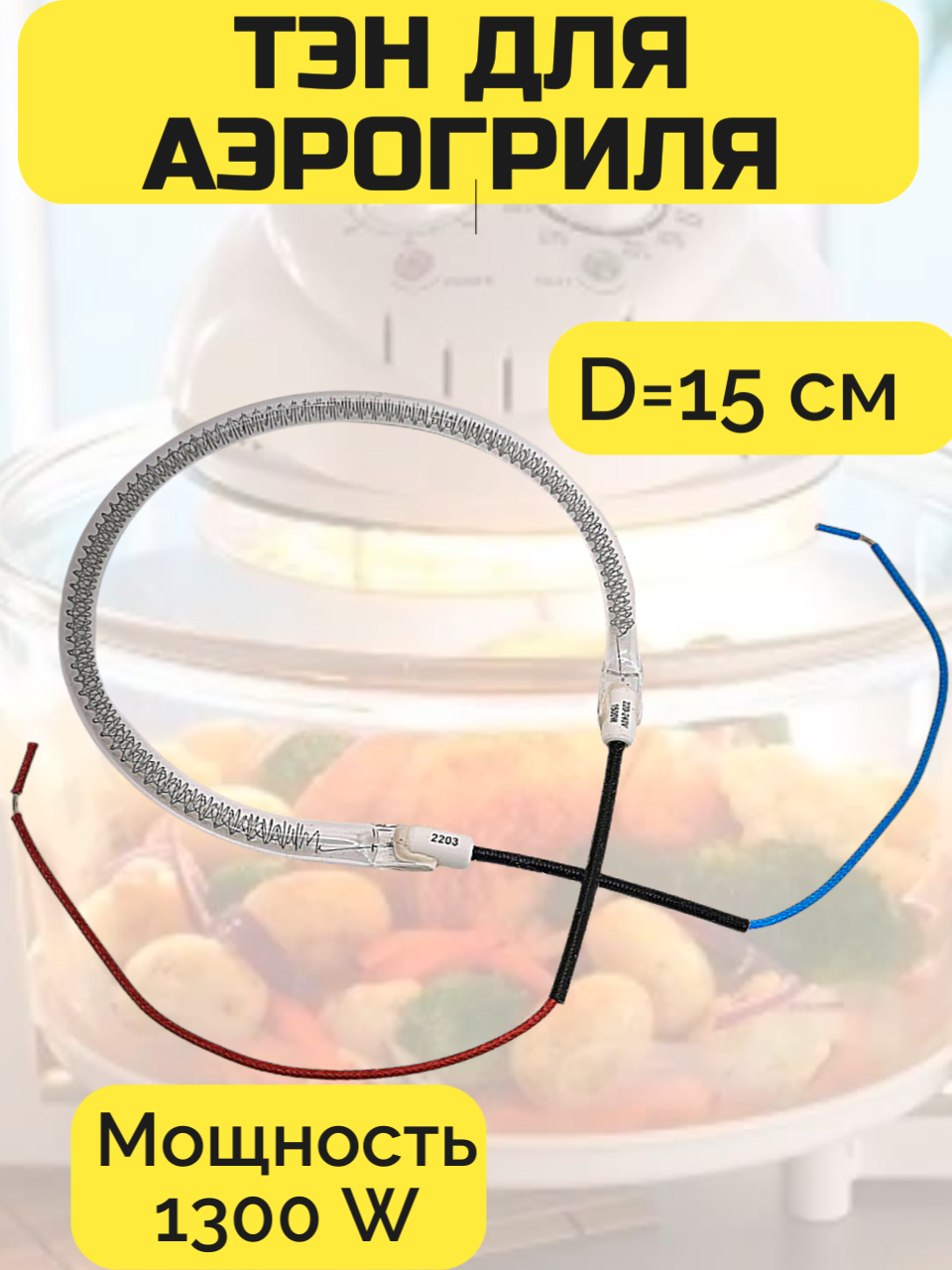 Тэн, нагревательный элемент для аэрогриля, стеклянный, универсальный диаметром 15 см, 1300W интересное: