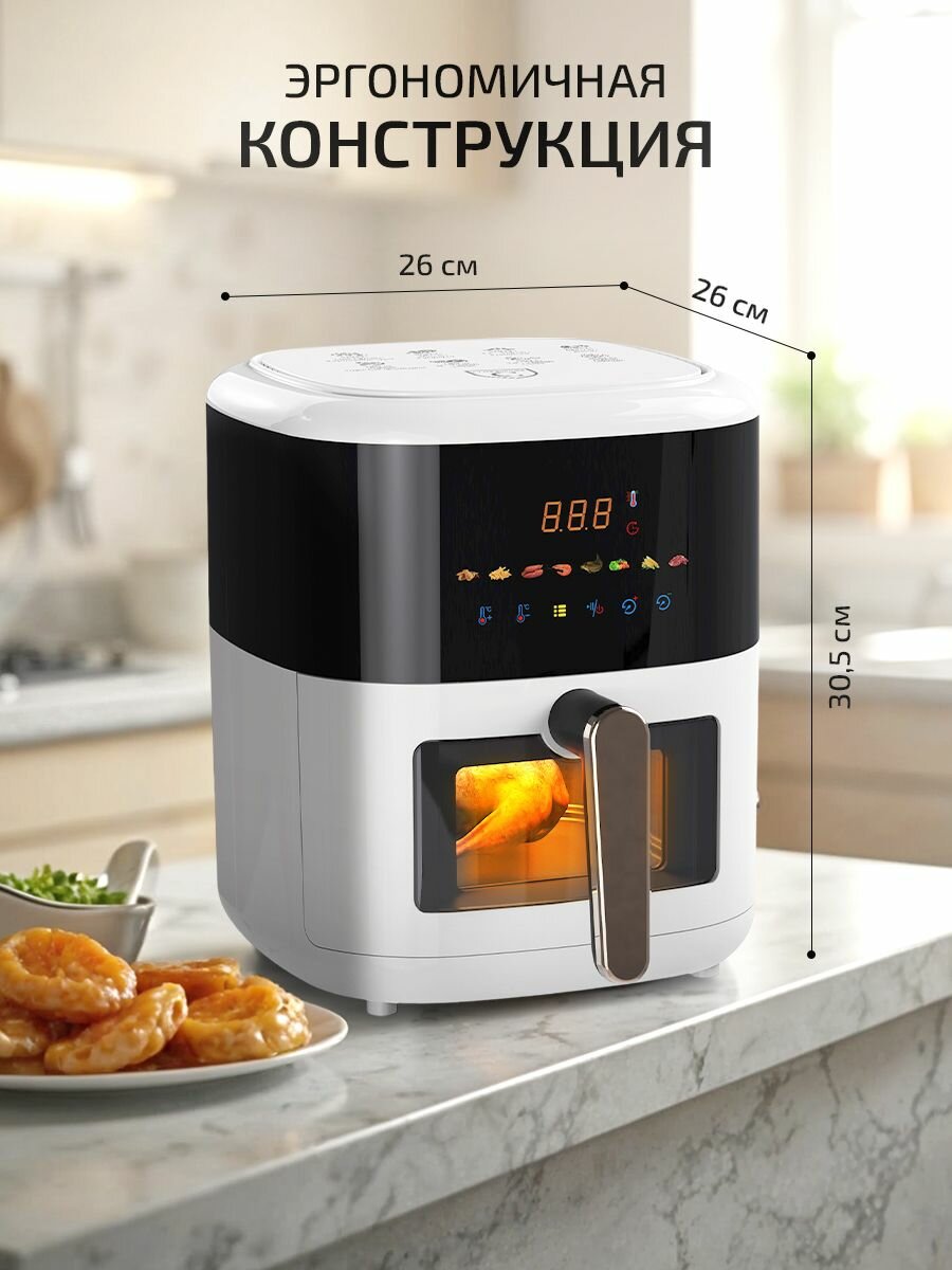 Купить Аэрогриль электрический Classmark аэрофритюрница для дома, мощность 1400 Вт, 8 программ приготовления, белый