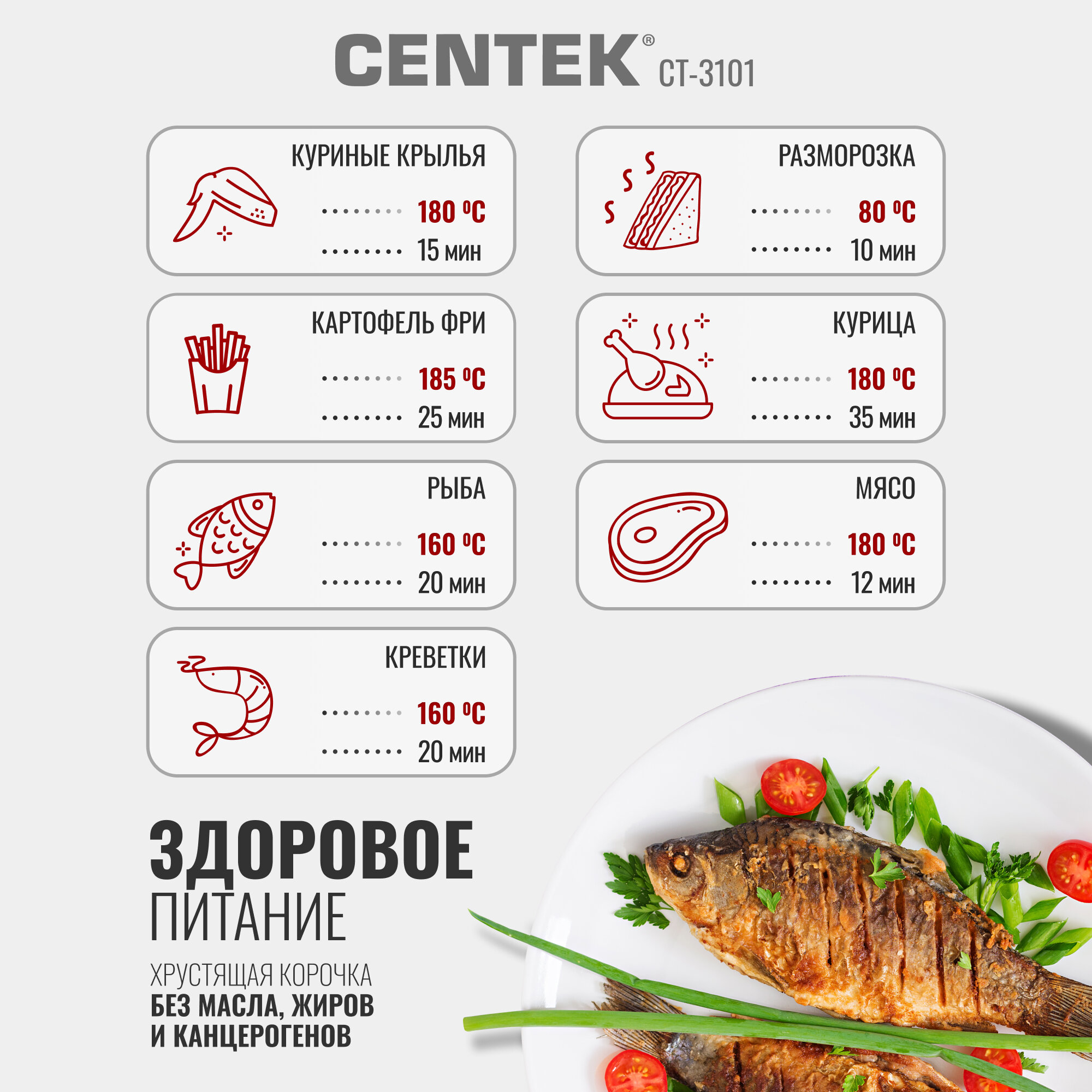 Ниже Вы можете прочитать отзывы на Аэрогриль Centek CT-3101: 1350Вт, сенсорное управление, 7 программ, быстрый нагрев, карбоновый тэн, со стеклянной чашей, ознакомится с подробными характеристиками, посмотреть интересные обзоры и фотографии на Аэрогриль Centek CT-3101: 1350Вт, сенсорное управление, 7 программ, быстрый нагрев, карбоновый тэн, со стеклянной чашей.