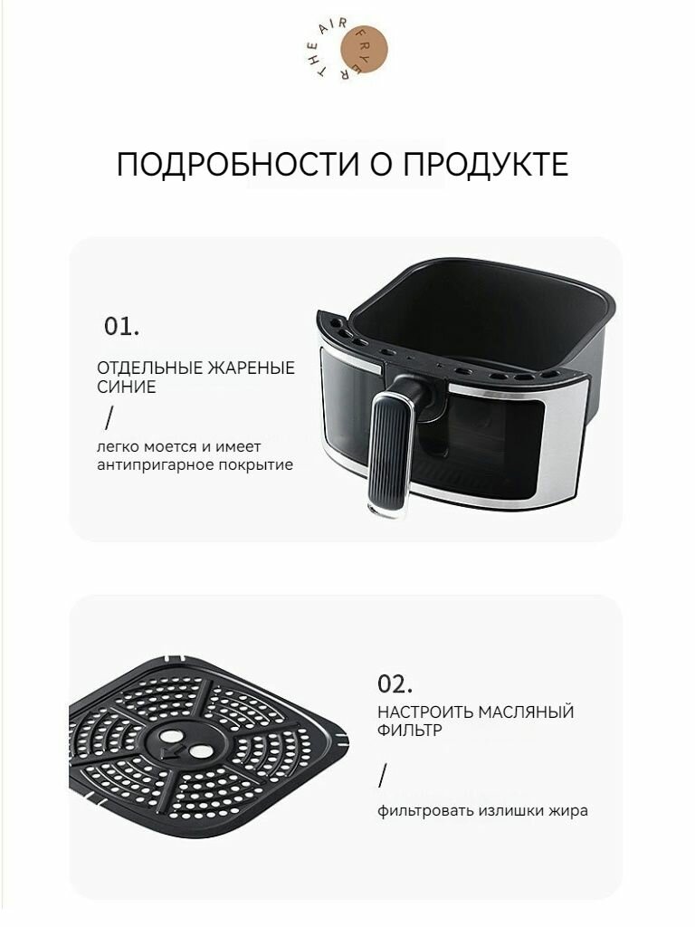 Аэрогриль электрический 6л, мощность 1350W, 10 кнопок предустановленного меню интересное: