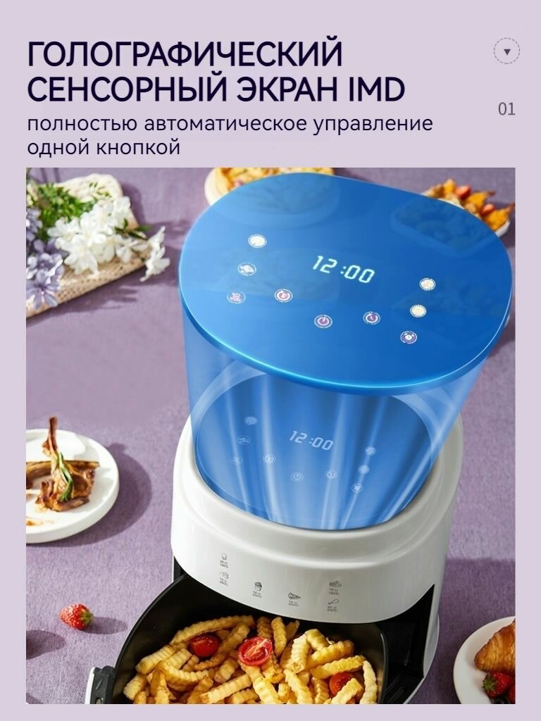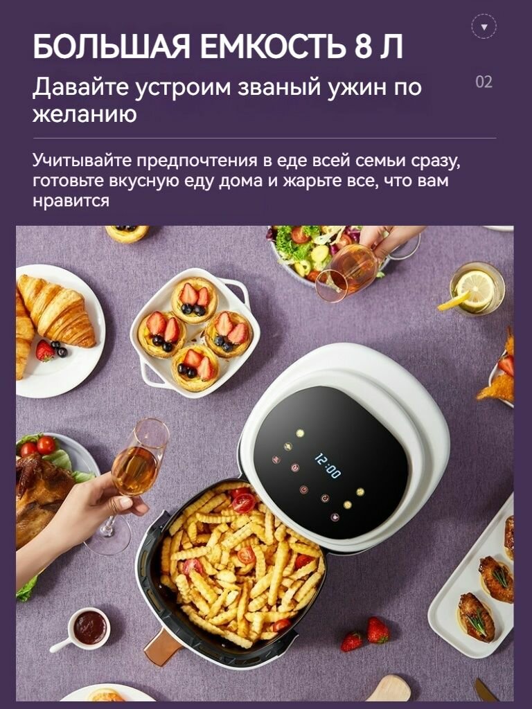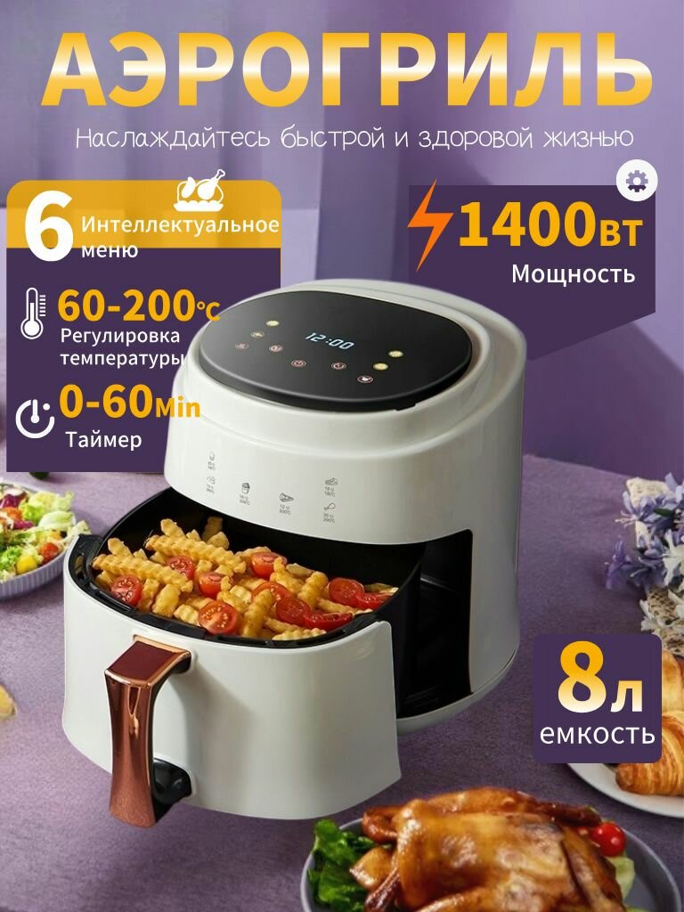Аэрогриль/аэрофритюрница 8 л, Аэрогриль электрический 8 л, 1400Вт, 6 программ, Сенсорный экран интересное: