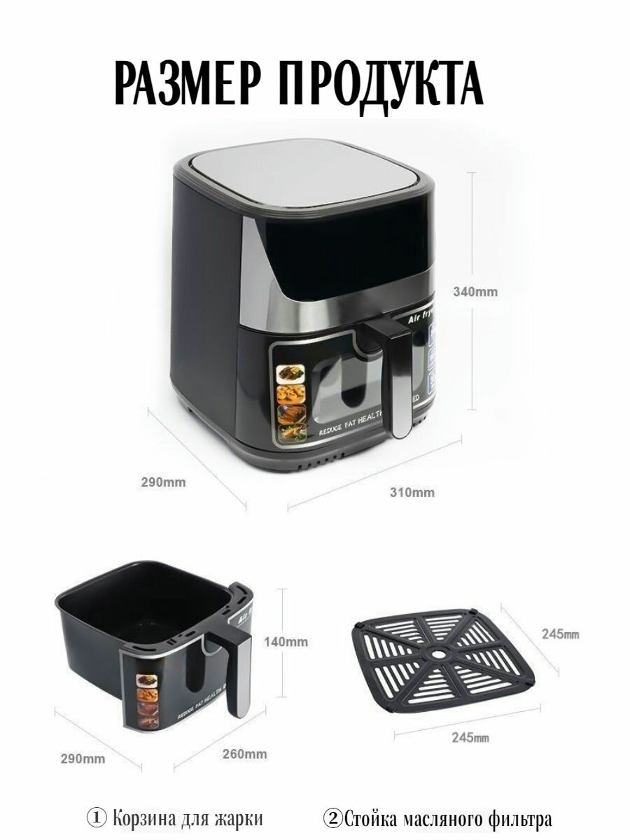 Аэрогриль электрический 8,8 л, 7.1-дюймовое обзорное окно, высокая мощность 1700 Вт интересное: