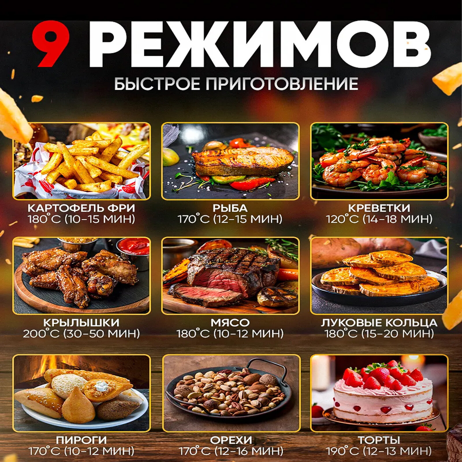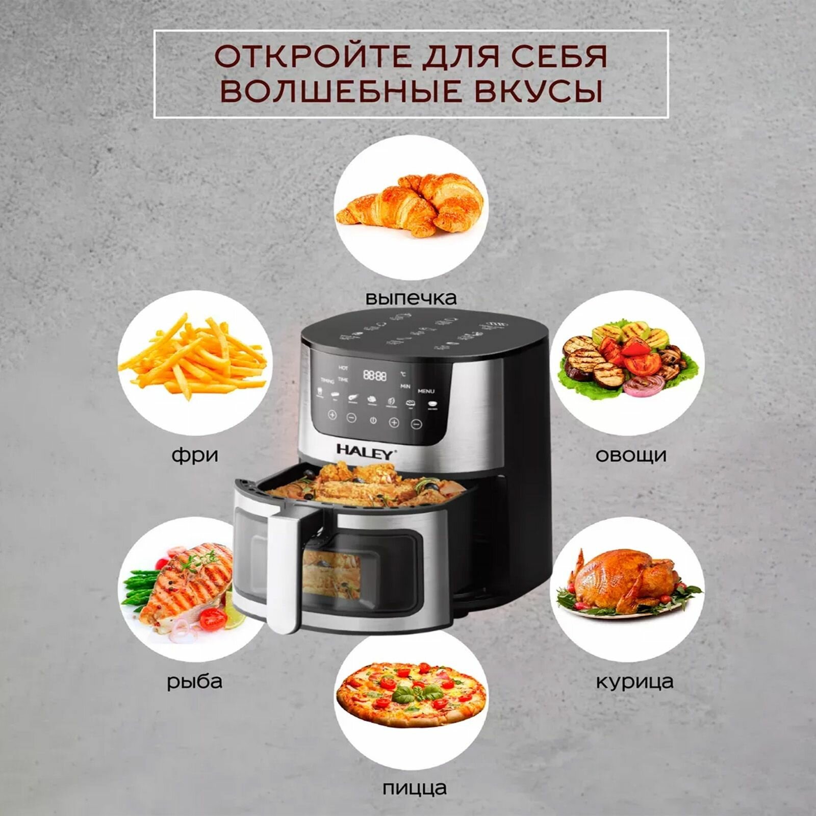 | Управление аэрогрилем | Таймер, Установка температуры |