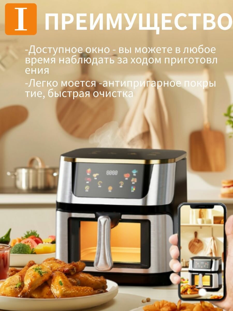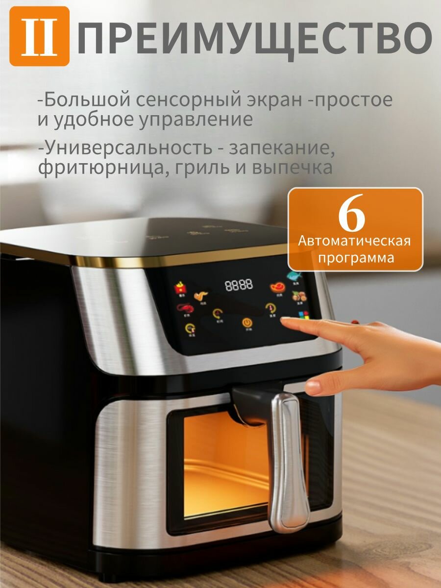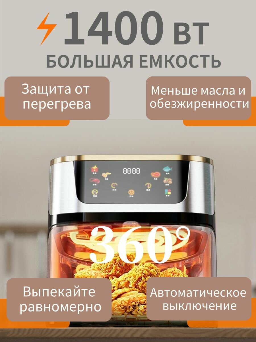 Аэрогриль электрический 10 литров, Корпус из нержавеющей стали, меньше масла и жира, здоровая пища интересное: