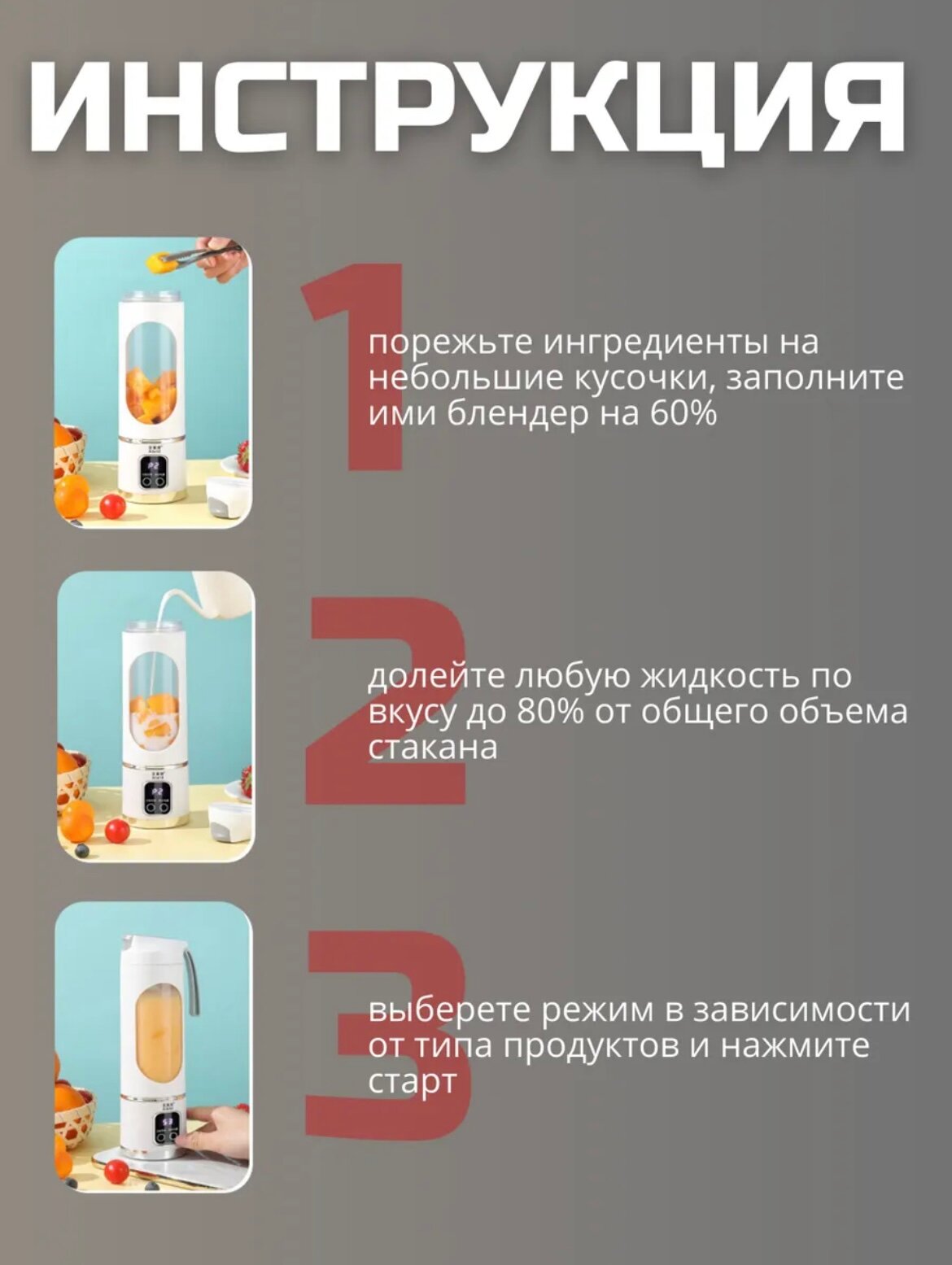 Портативный блендер беспроводной для смузи и коктейлей, 3 скорости с дисплеем, белый интересное: