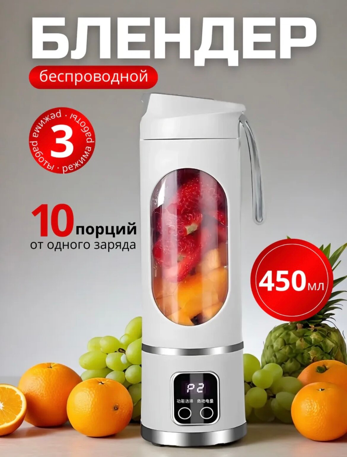 Купить Портативный блендер беспроводной для смузи и коктейлей, 3 скорости с дисплеем, белый