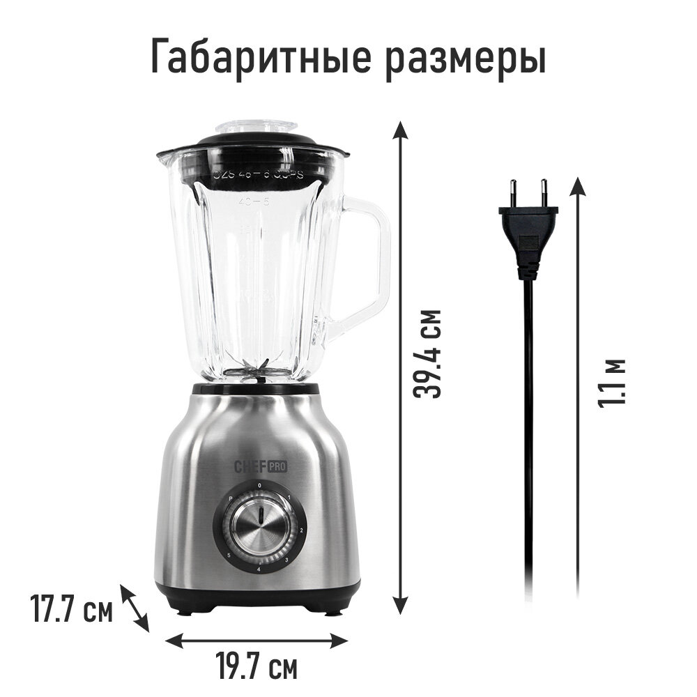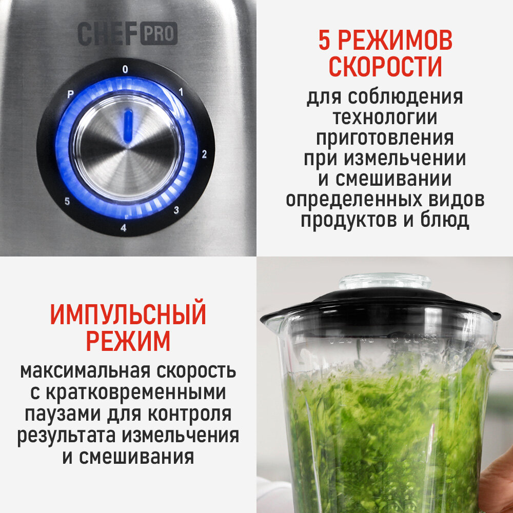 Блендер стационарный CHEF PRO CF-KP1102A, 3000Вт, 5 скоростей, стеклянная чаша, 1.5л интересное: