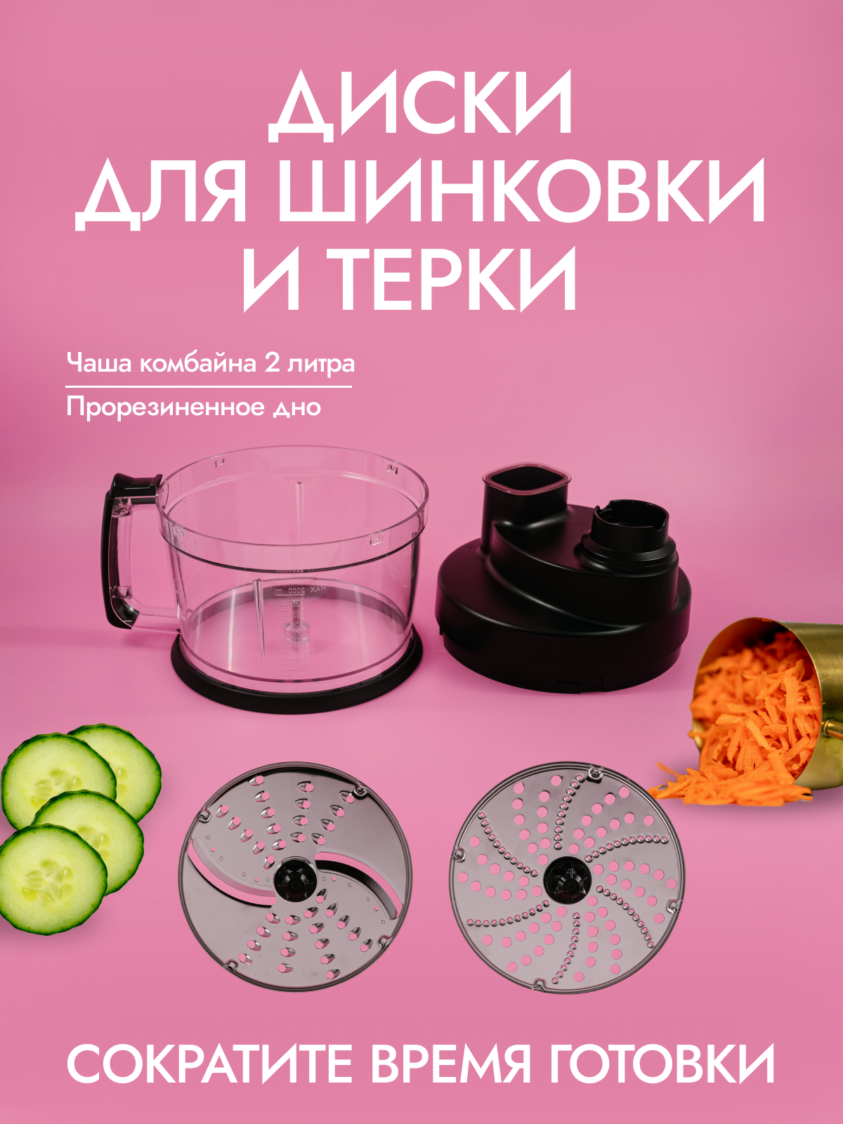 | Насадки | венчик для взбивания / диск для нарезки ломтиками / для замешивания теста / для нарезки кубиками / для приготовления пюре / измельчитель / насадка для шинковки / терка |