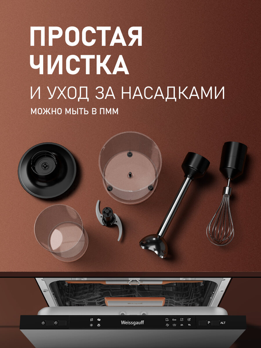 Блендер погружной Weissgauff WHB 251 PKB Silent Mix 3 в 1, 15000 оборотов в минуту интересное: