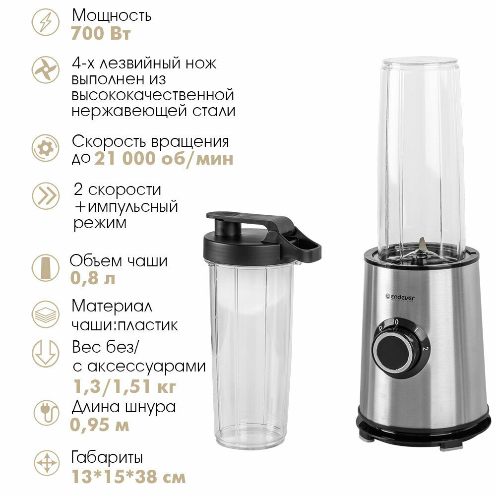 Блендер стационарный ENDEVER SIGMA-206 / 700 Вт / 2 скорости / с бутылкой 800 мл / импульсный режим интересное: