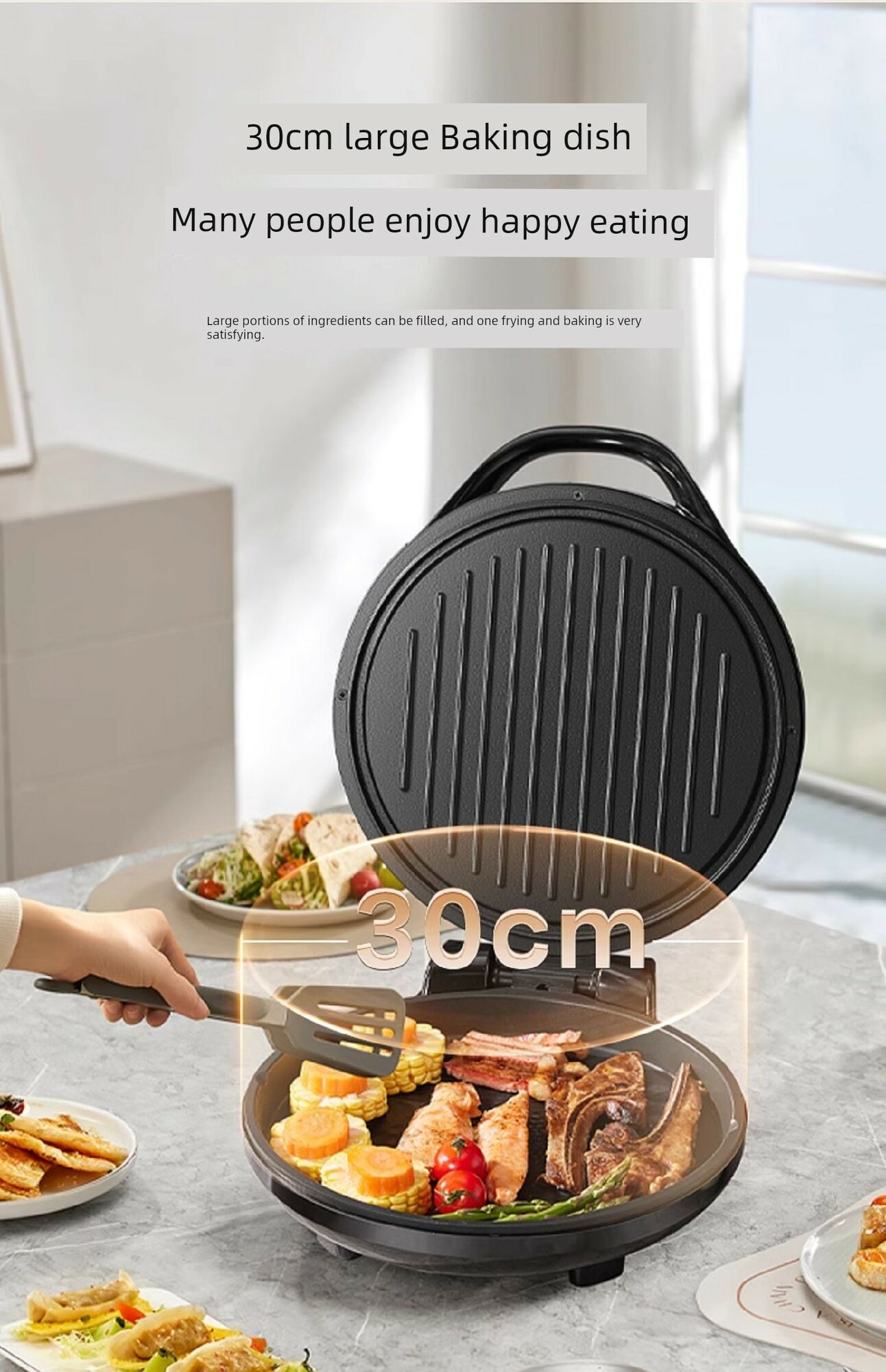 Электрическая блинница с двусторонним нагревом и антибактериальным покрытием - Серебристо-серая