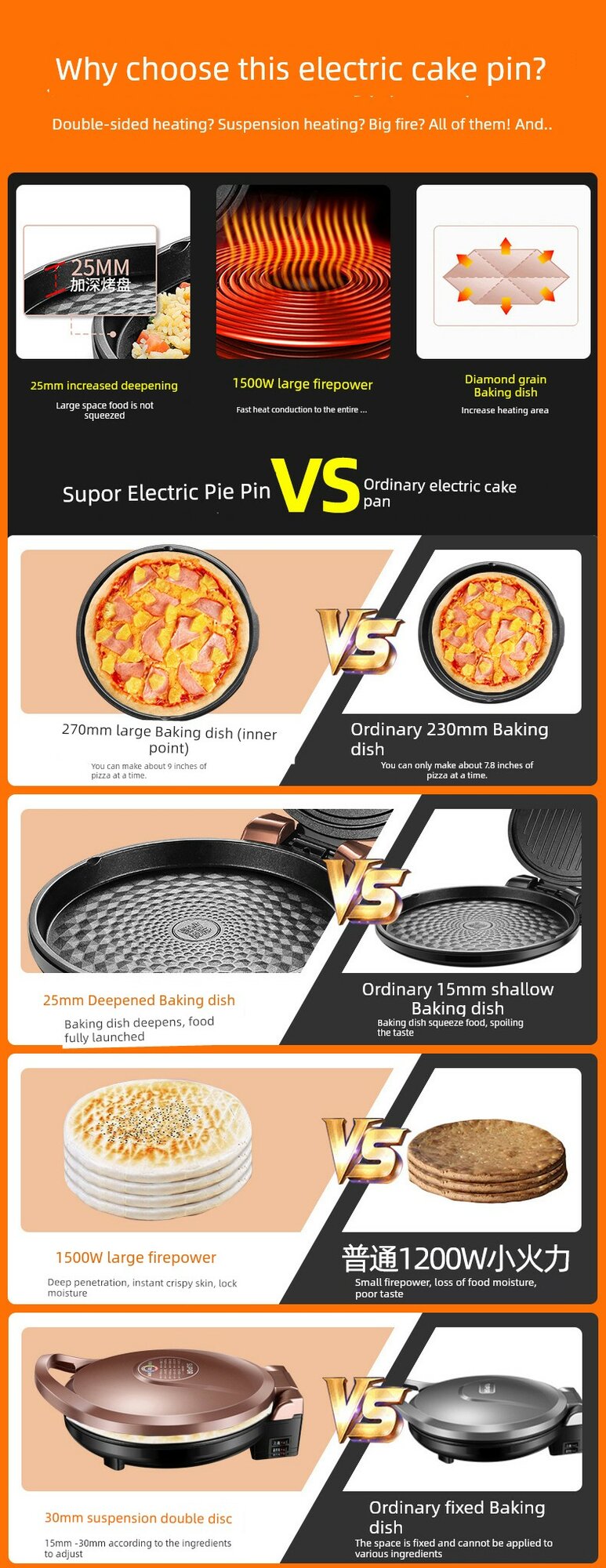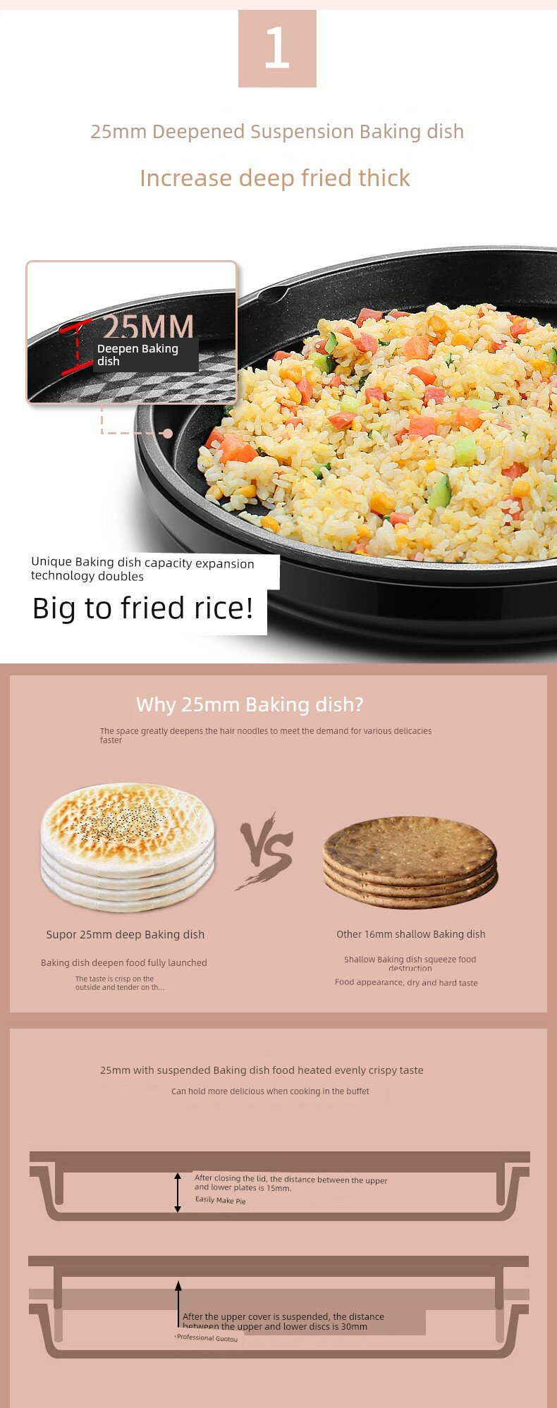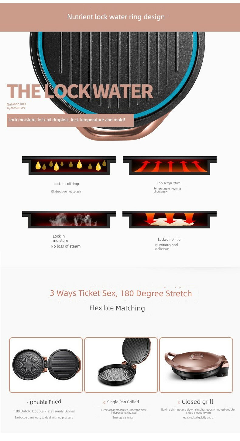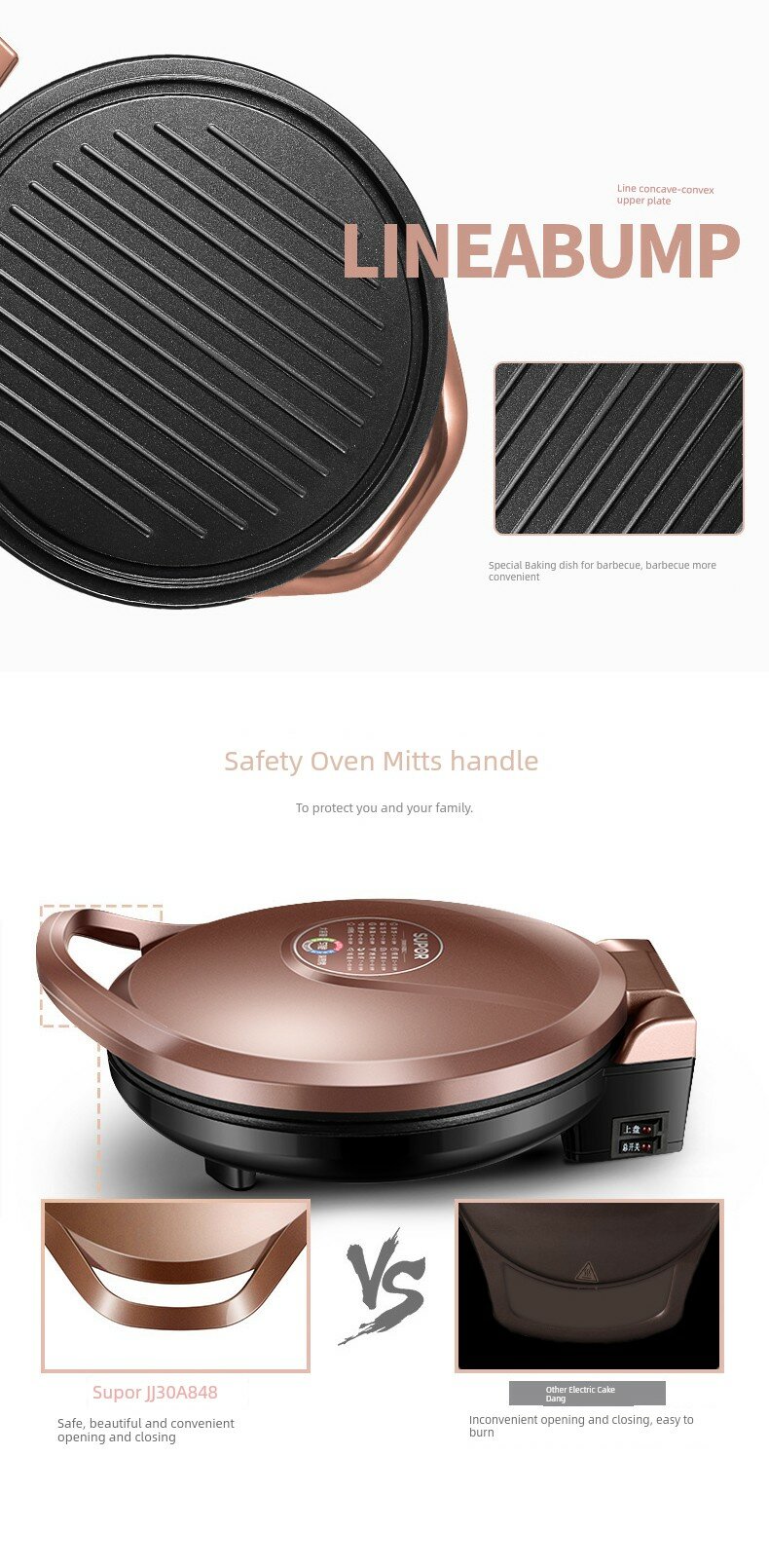 Электрическая блинница Supor двухсторонняя 30 см, 1500 Вт - Розовое золото интересное: