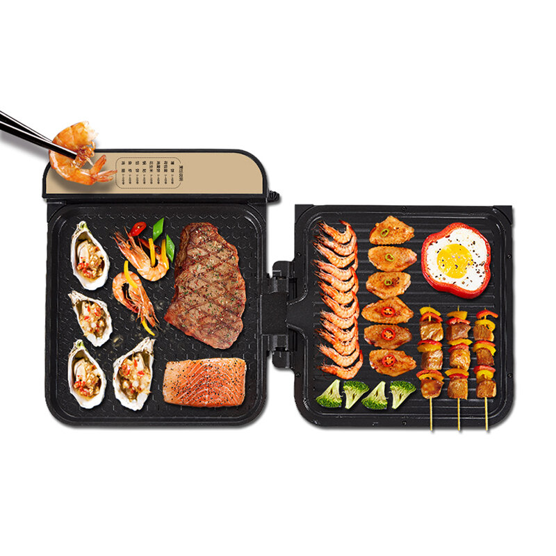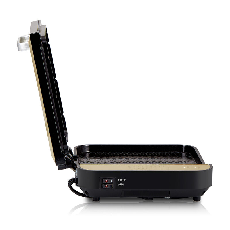 | Дополнительная информация | процесс штамповки металла с цветным покрытием, пищевое покрытие, квадратная форма для выпечки, вертикальная канавка для отвода масла, подвесная конструкция, место для хранения шнура питания, верхняя и нижняя панели могут нагреваться независимо, верхняя панель расширяется на 95°/180° |