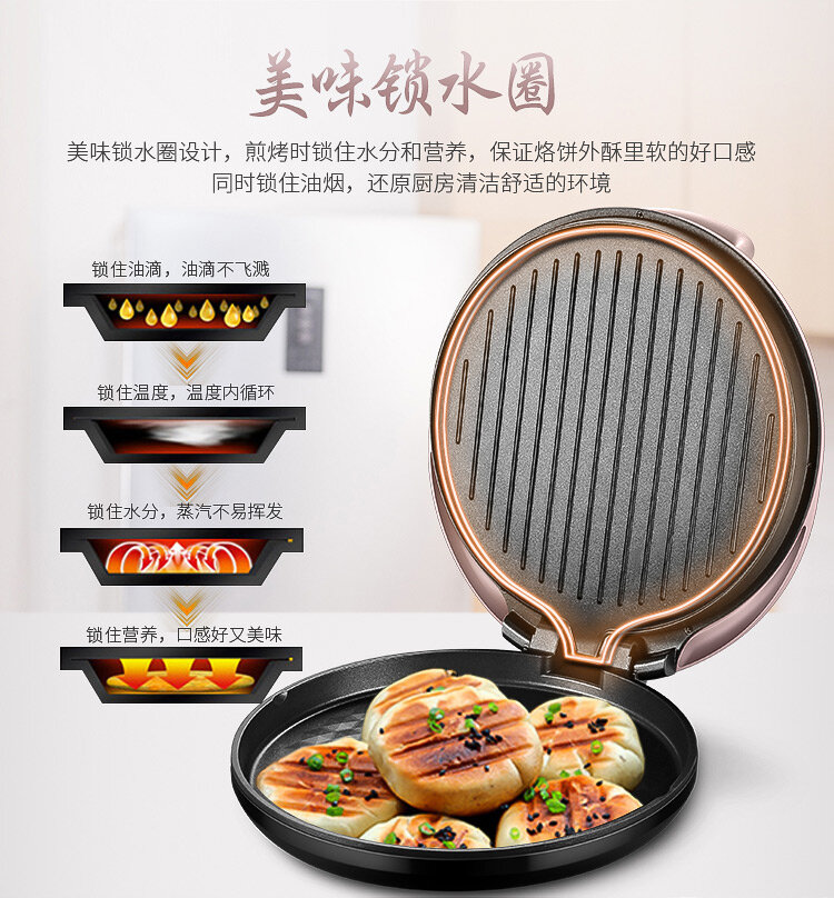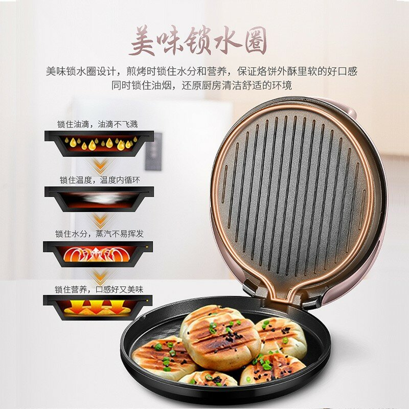 | Дополнительная информация | большая жарочная поверхность 34 см, жарочная поверхность глубиной 25 мм, процесс напыления шампанским золотом, вертикальная маслоотводящая структура, вкусное кольцо для удержания воды, жарка с открытием на 180°, шнур питания легко хранить |