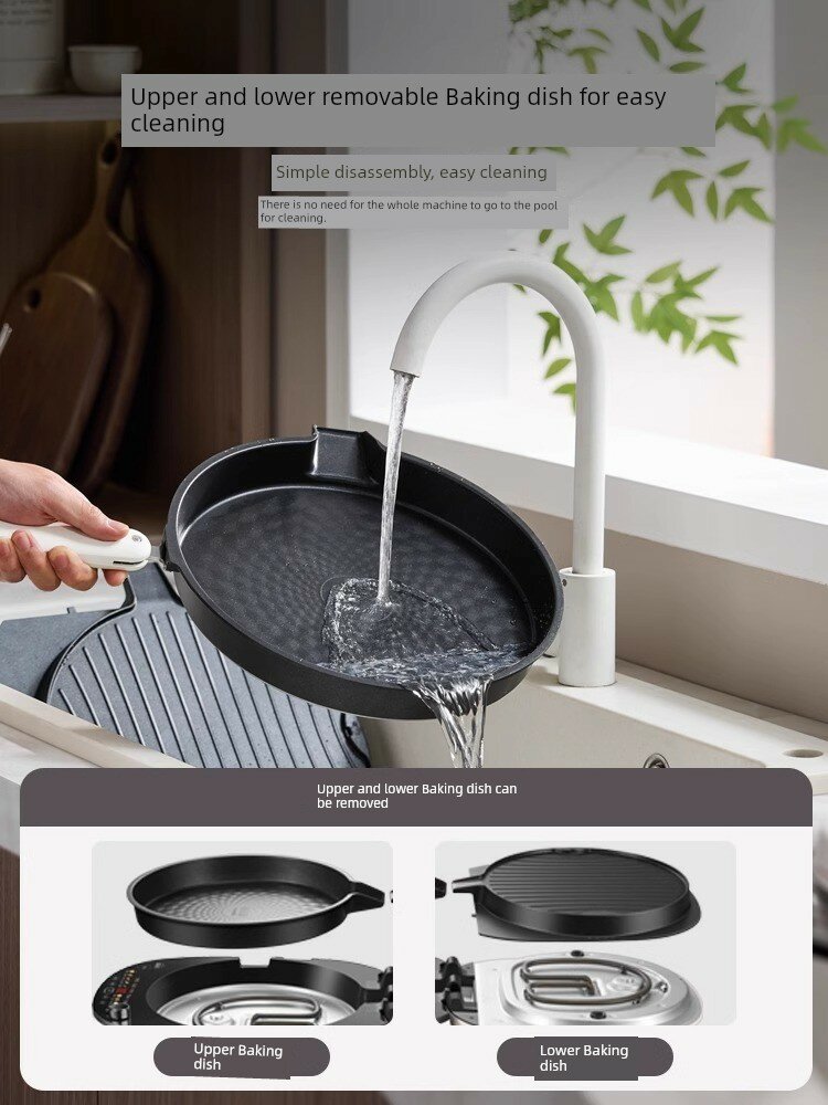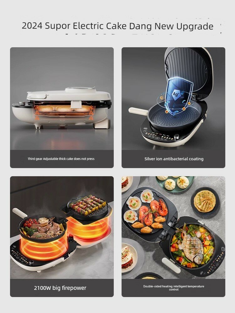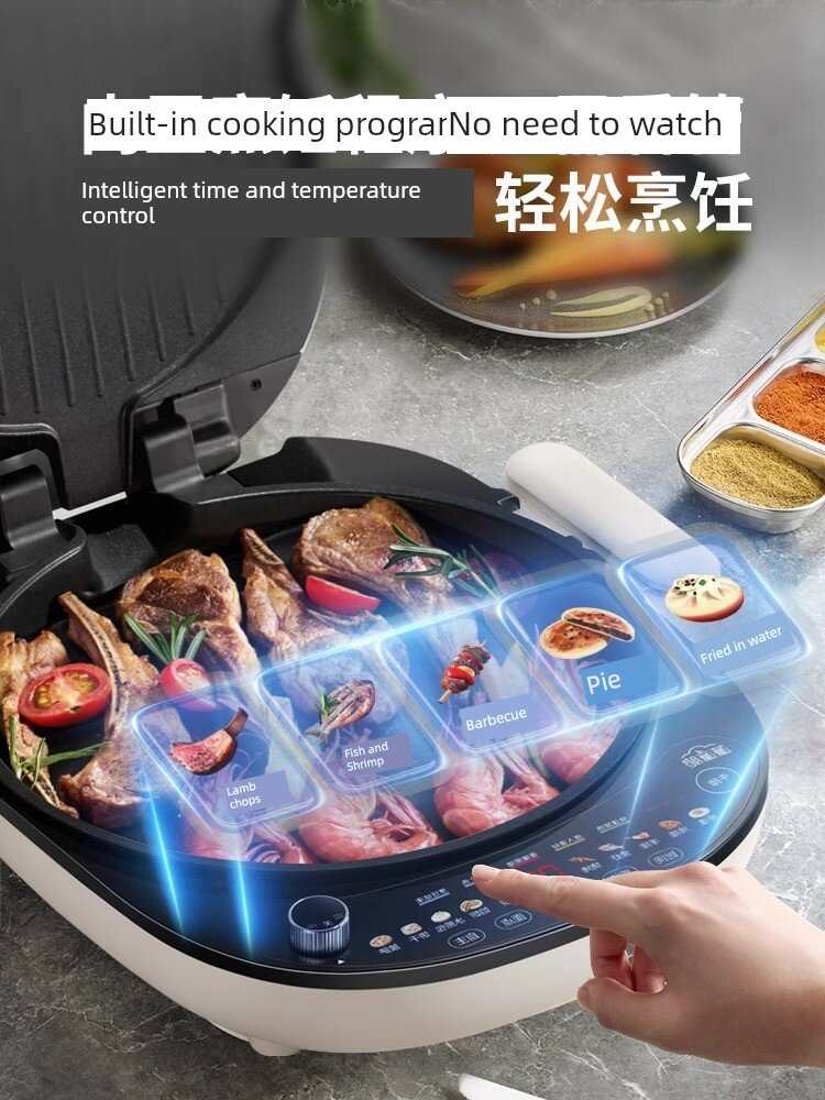 Купить Электрическая блинница с двусторонним нагревом, съемными панелями 30 см, небесно-голубая