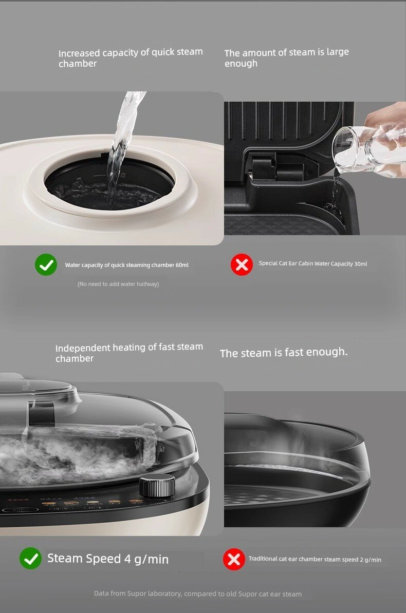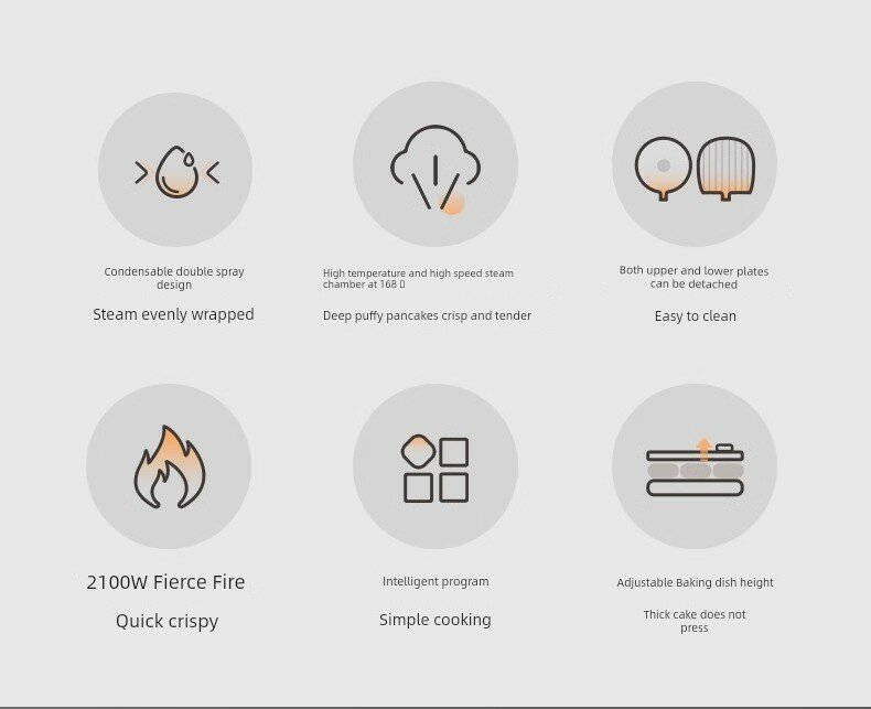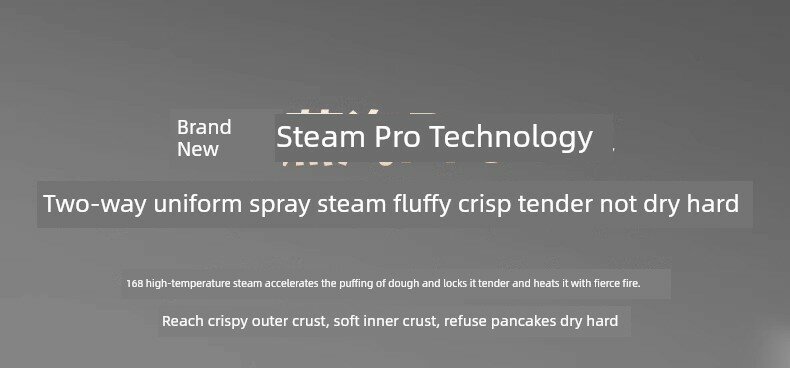 | Дополнительная информация | технология steampro, пар высокой температуры 168°, двустороннее равномерное распыление, интеллектуальный контроль времени и температуры, верхняя и нижняя съемная форма для выпечки, антибактериальное покрытие с ионами серебра, большая огневая мощь 2100 вт, двусторонний нагрев, интеллектуальный контроль температуры, конструкция с двойным распылением от протечек, внешний резервуар для воды, регулируемая форма для выпечки, интеллектуальная программа, простая готовка, увеличение формы для выпечки на 30 см, форма для выпечки с антипригарным покрытием, вертикальный маслоотвод, отверстие для хранения проводов, приподнятая нескользящая накладка |
