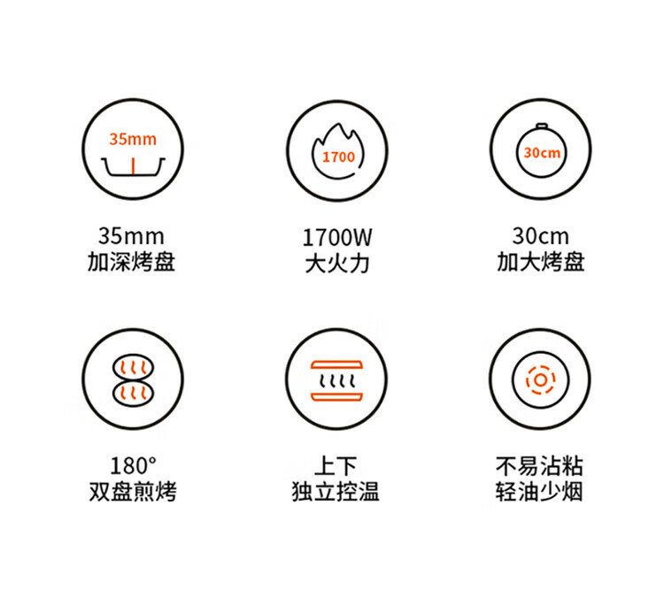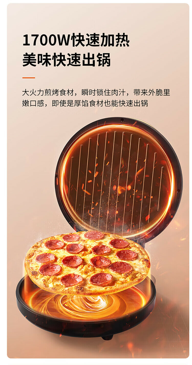 | Дополнительная информация | углубленная форма для выпечки, большая мощность, форма для выпечки 30 см, углубленная форма для выпечки 3,5 см, двусторонняя жарка на 180°, независимый контроль температуры, антипригарное покрытие, мало масла и меньше дыма, 10 видов рецептов, подвесная конструкция формы для выпечки, водозапорное кольцо сбора энергии, форма для выпечки с сотовой структурой, Y-образный маслоотвод, хранение шнура питания |