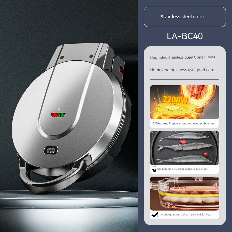 Купить Электрическая блинница из нержавеющей стали с металлической крышкой, 40 см, 2200 Вт