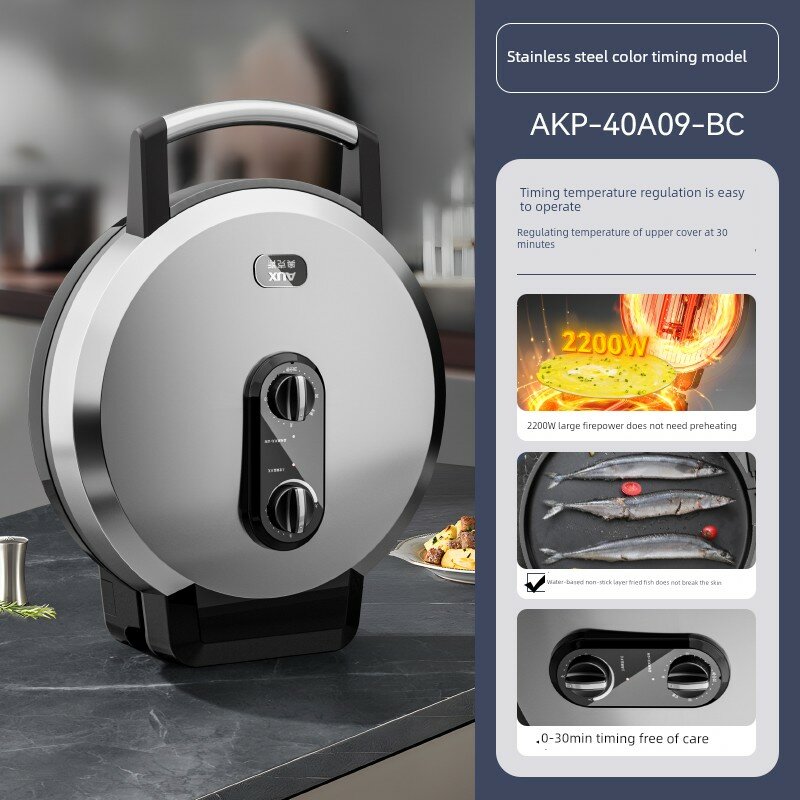 Купить Электрическая блинница с регулируемой температурой, серебристая, 40 см, 2200 Вт