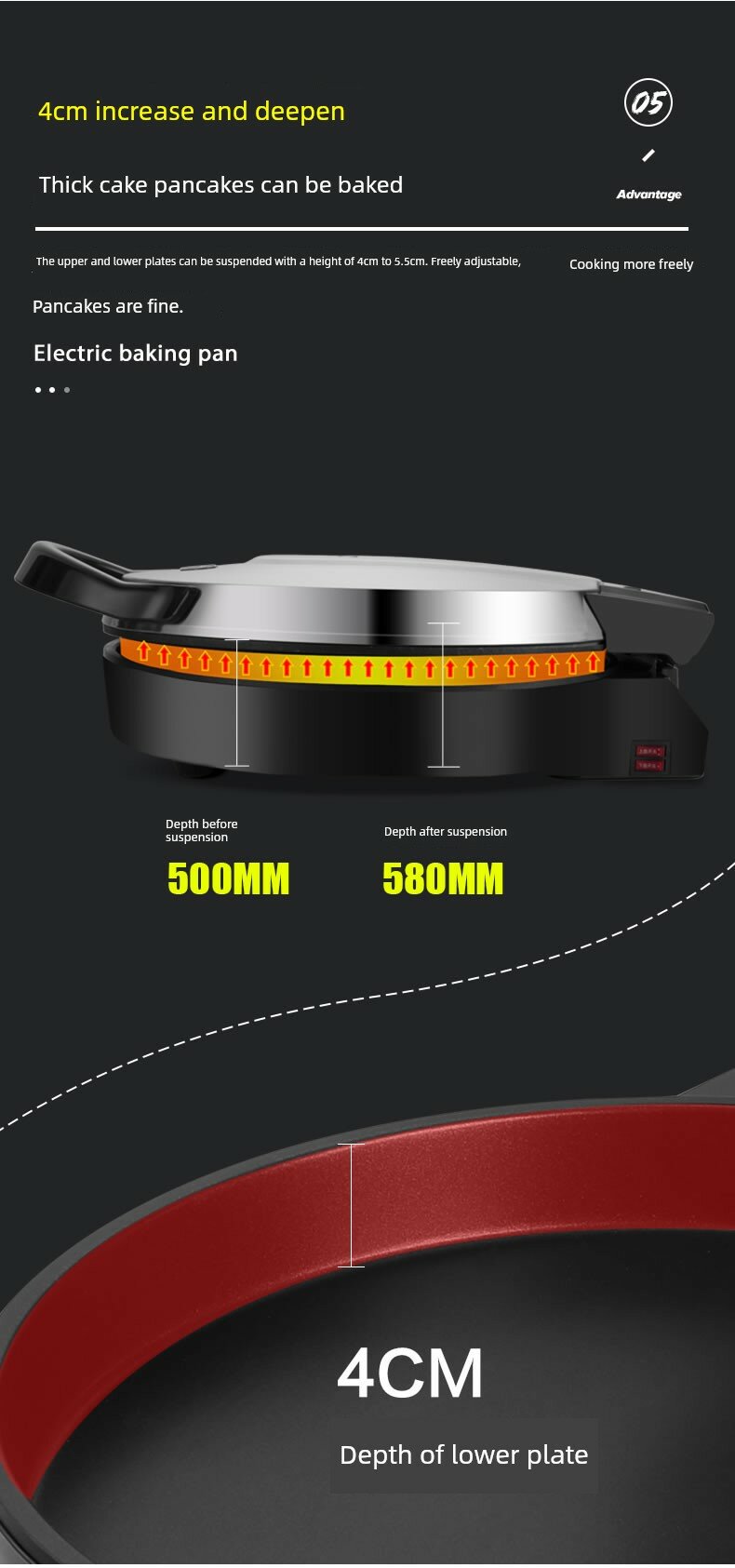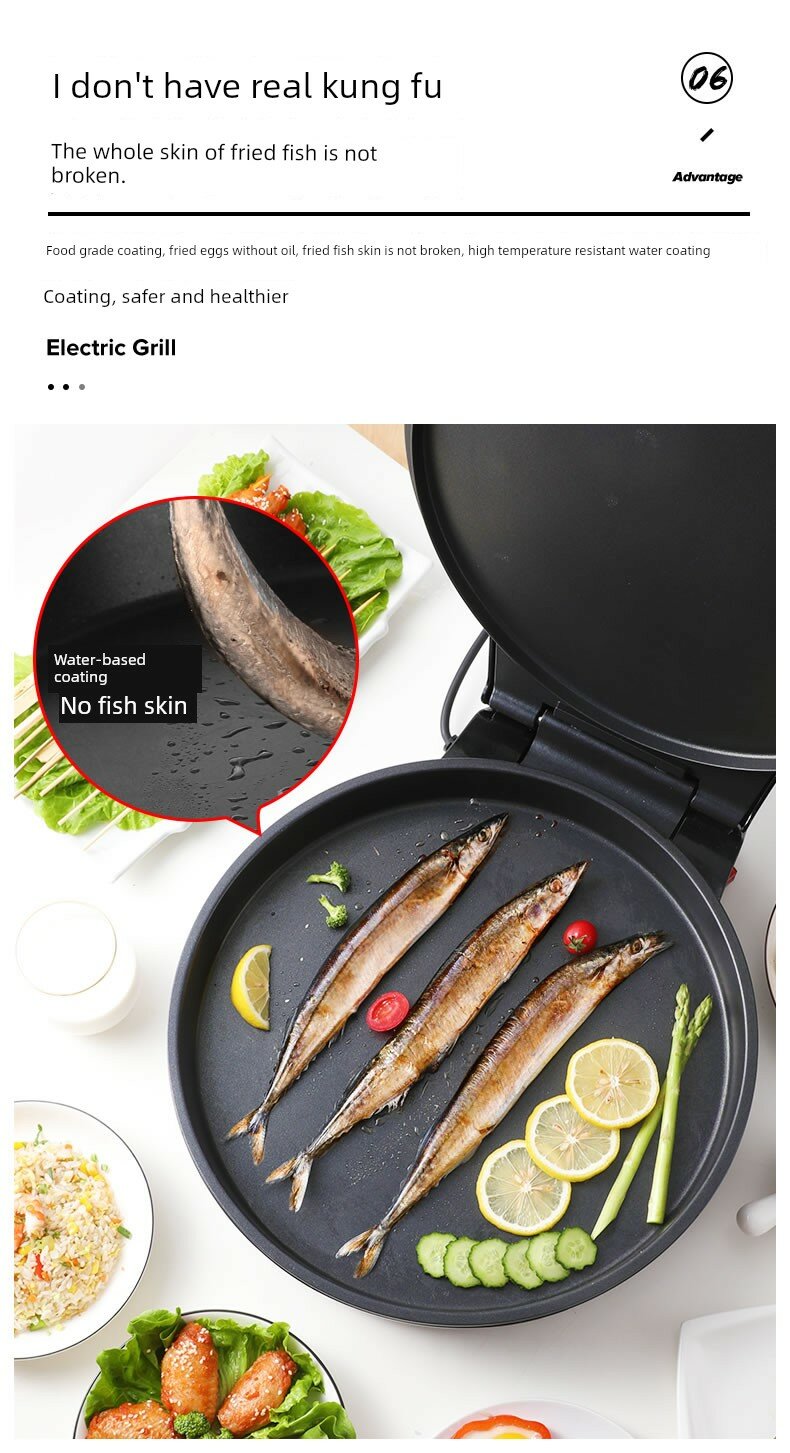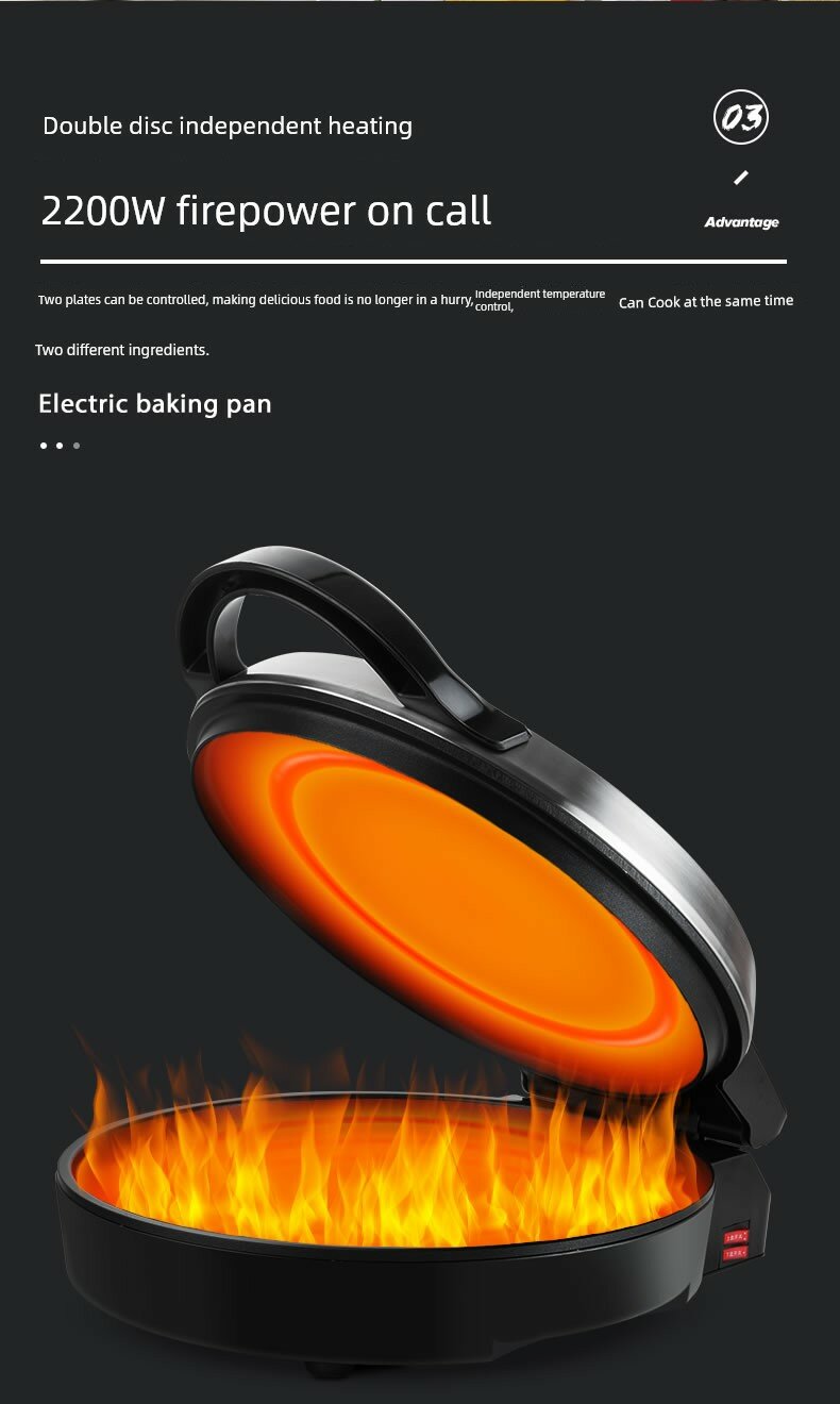 | Дополнительная информация | 35 см большой калибр, большая огневая мощь 2200 Вт, двухсторонняя выпечка, пищевая антипригарная поверхность, верхняя и нижняя подвесная форма для выпечки, многофункциональная жарка на сковороде, независимый нагрев с двумя дисками, независимый контроль температуры, защита от перегрева, увеличение и углубление на 3.5 см, покрытие на водной основе, хранение в вертикальном положении |