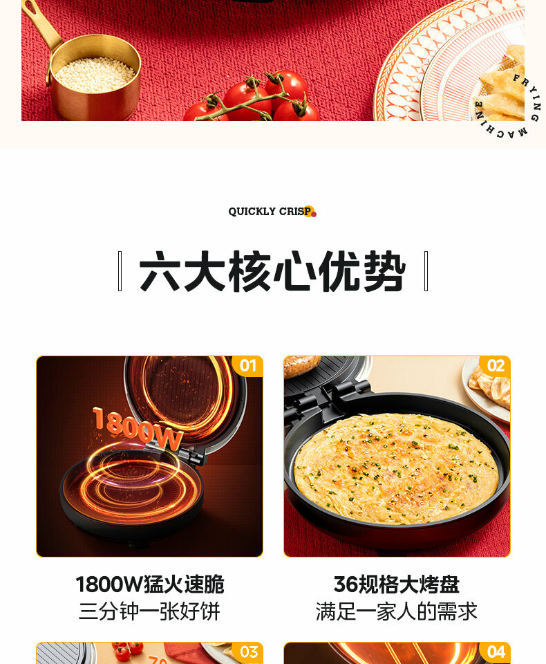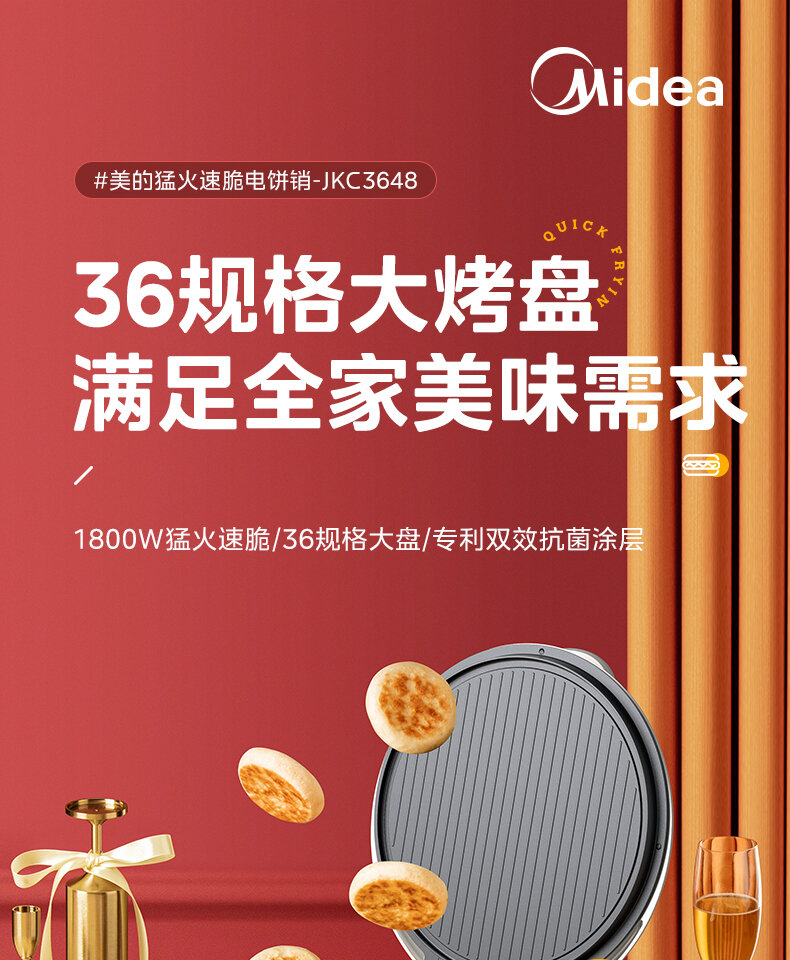 Электрическая блинница высокой мощности MC-JKC3648, золотистая интересное: