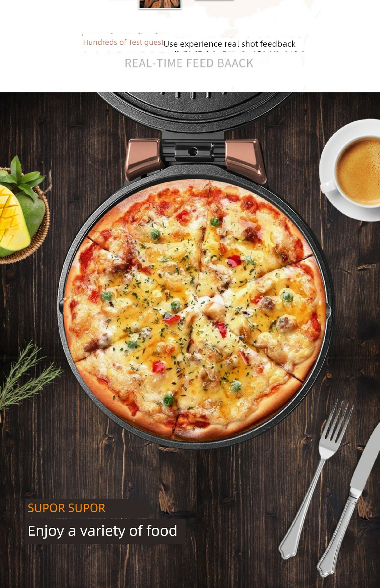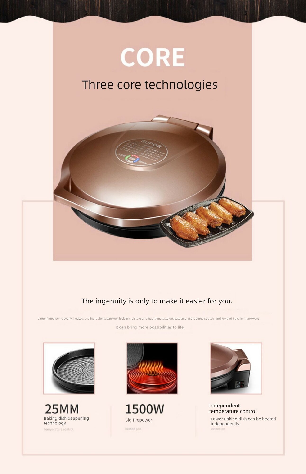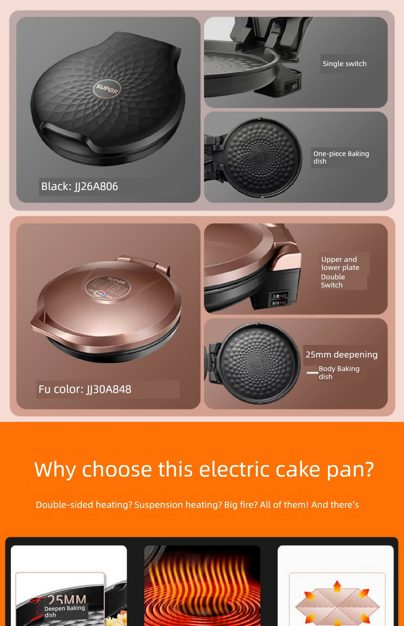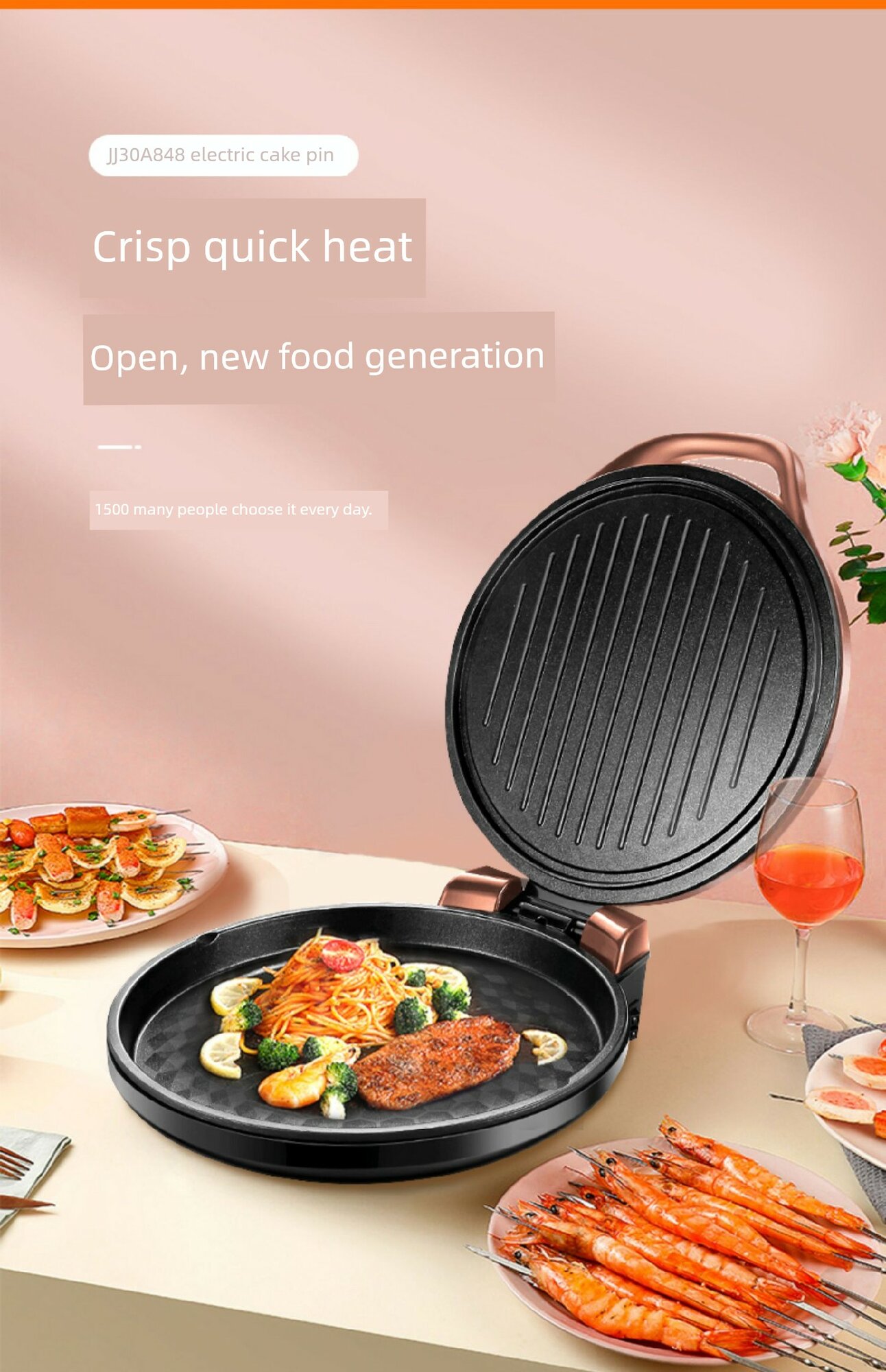 Электрическая двухсторонняя блинница Supor JJ30A848, розовое золото интересное: