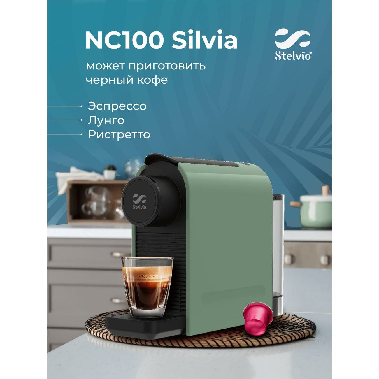 Кофемашина капсульного типа Stelvio Silvia NC100 зеленая интересное: