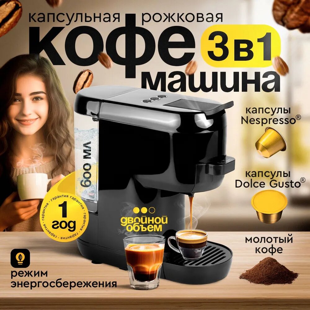 Кофемашина кофеварка OLM-KFX006 капсульная и рожковая регулировка объема интересное: