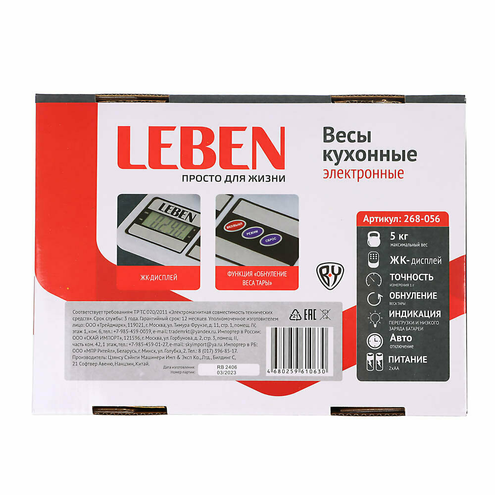 Купить 2 штуки (комплект) Весы кухонные электронные, металл, пластик, макс. нагрузка до 5кг, (точн. измер 1 гр.) LEBEN