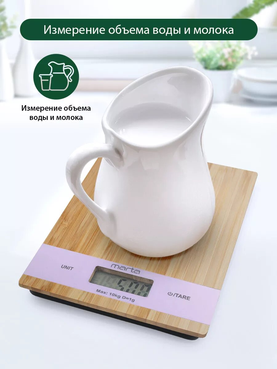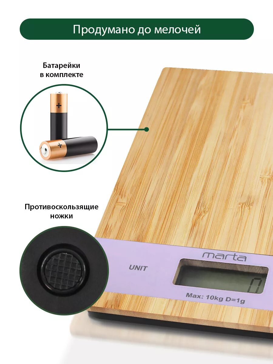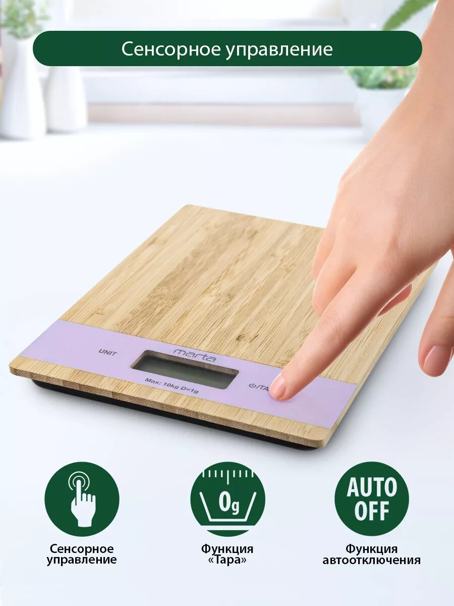 Весы кухонные MARTA MT-1639 лиловый бамбук интересное: