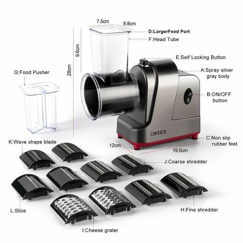 Купить Электрическая овощерезка, терка, измельчитель электрические/ терка для сыра/машина для салата для фруктов/с 5 бесплатными насадками