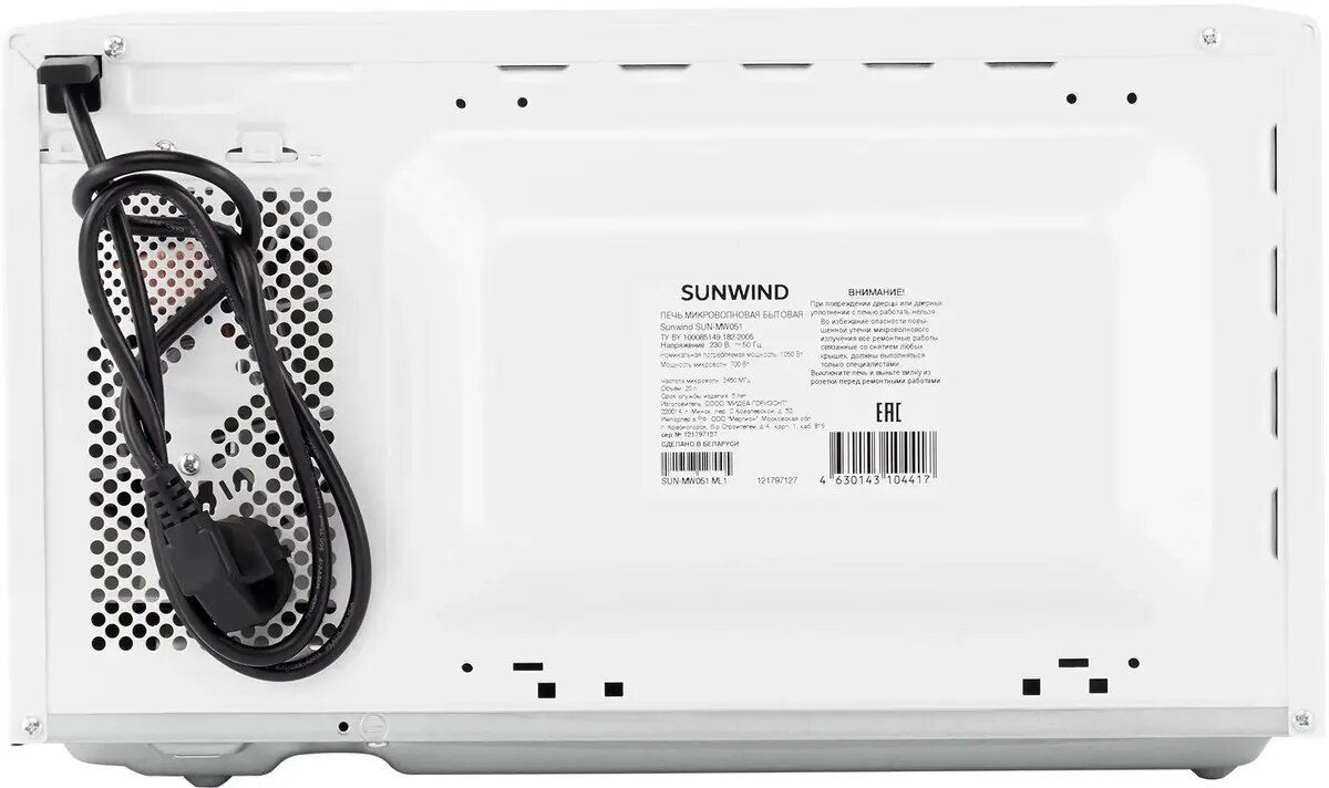 Микроволновая печь Sunwind SUN-MW051,700Вт, объем 20л, белая интересное: