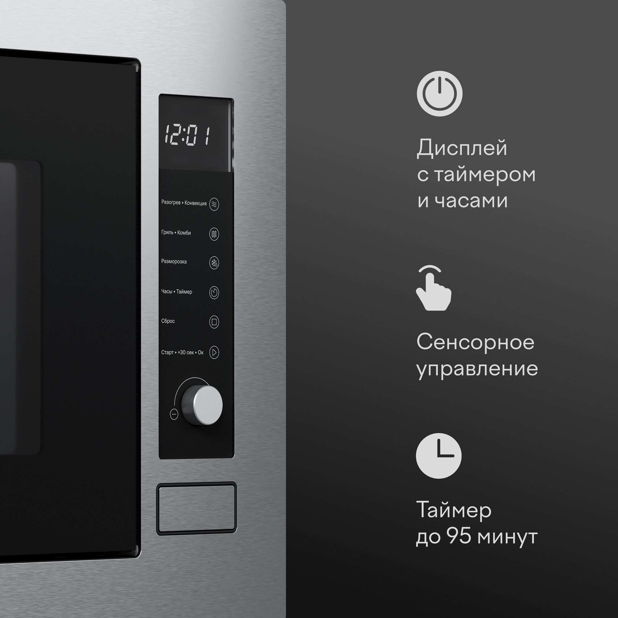 Встраиваемая микроволновая печь с функцией конвекции, гриля и разморозки Tuvio MB34CTS9I11, серебристый интересное: