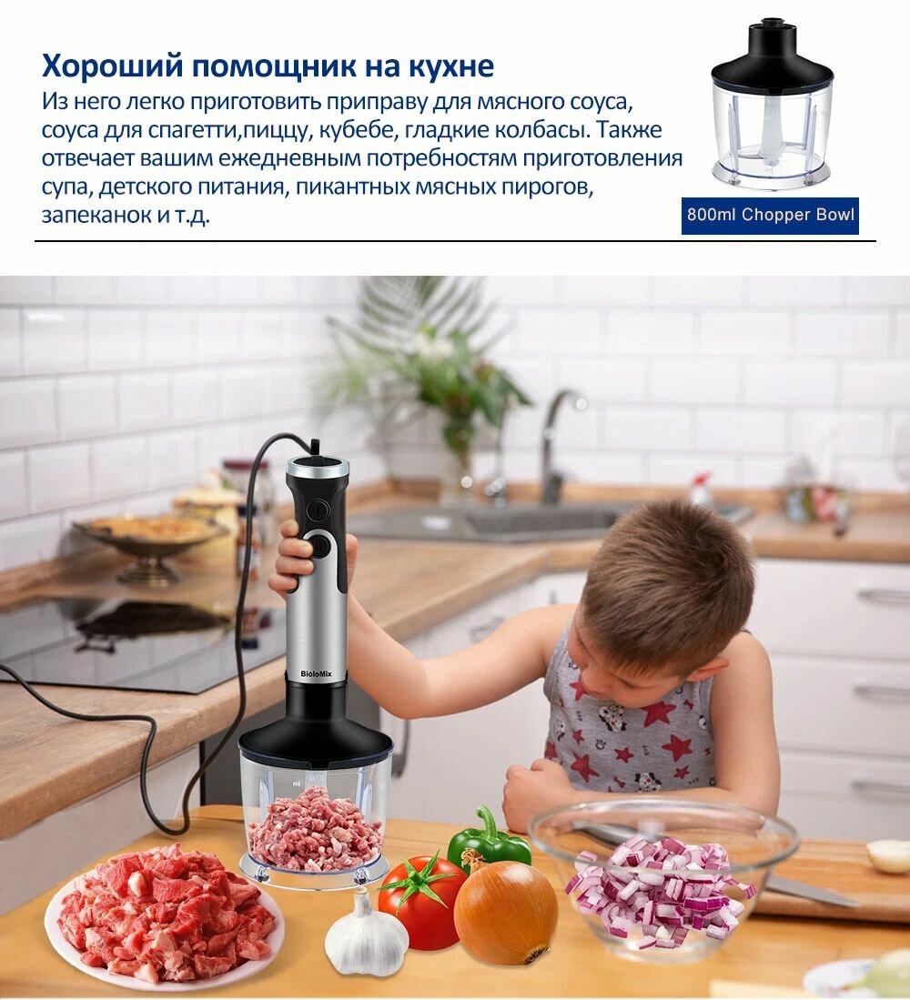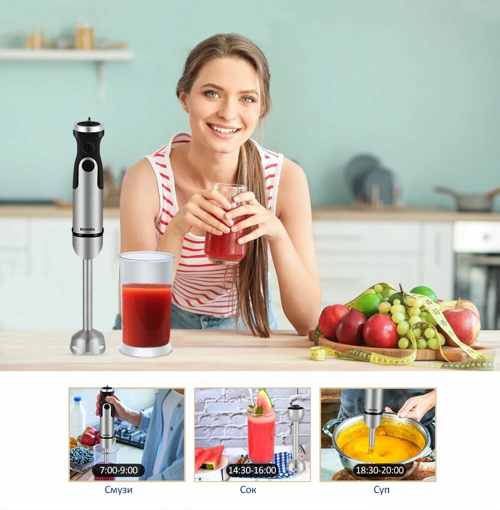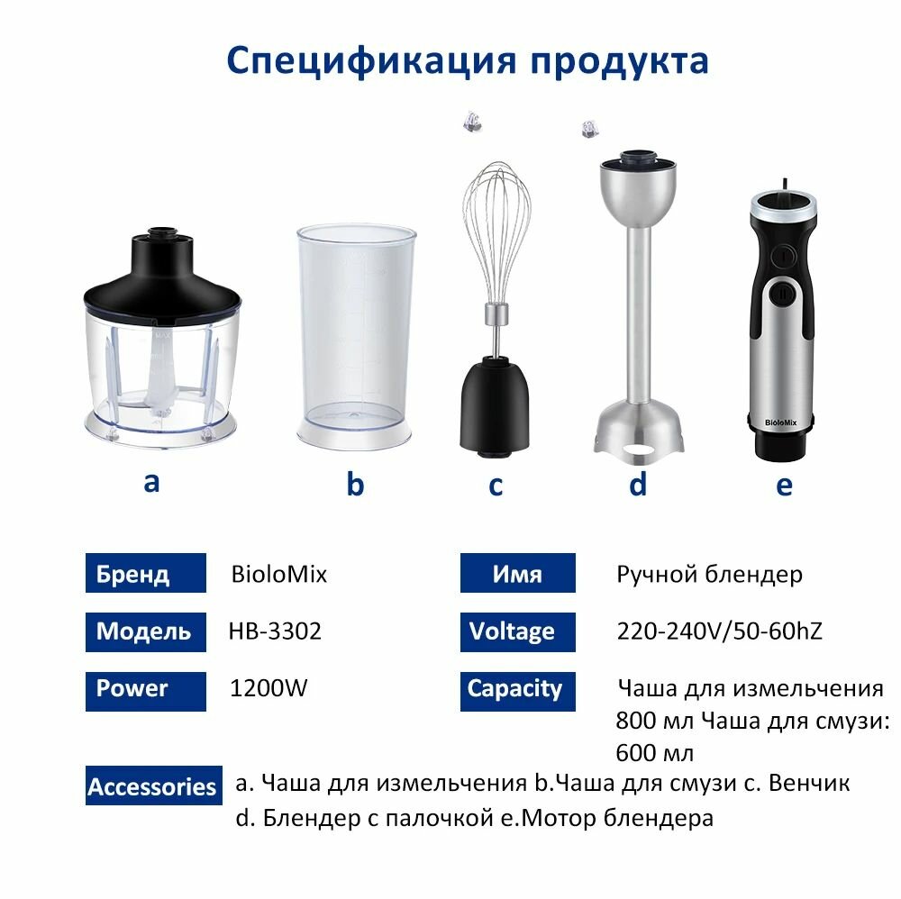 Блендер Biolomix, 1200Вт, 5 в 1, черный, стекло, металл, пластик интересное: