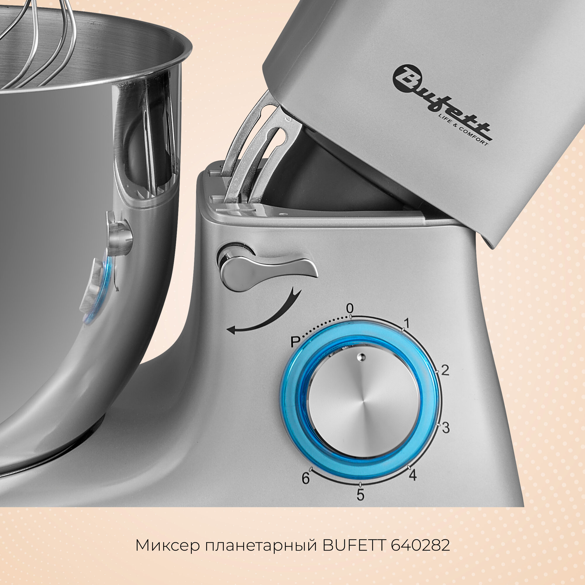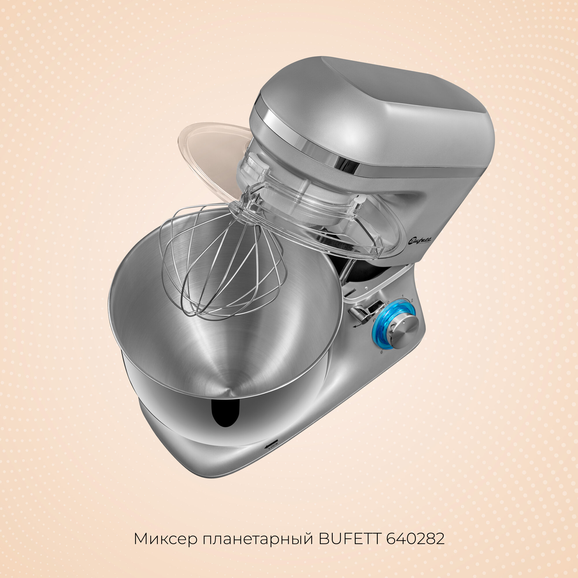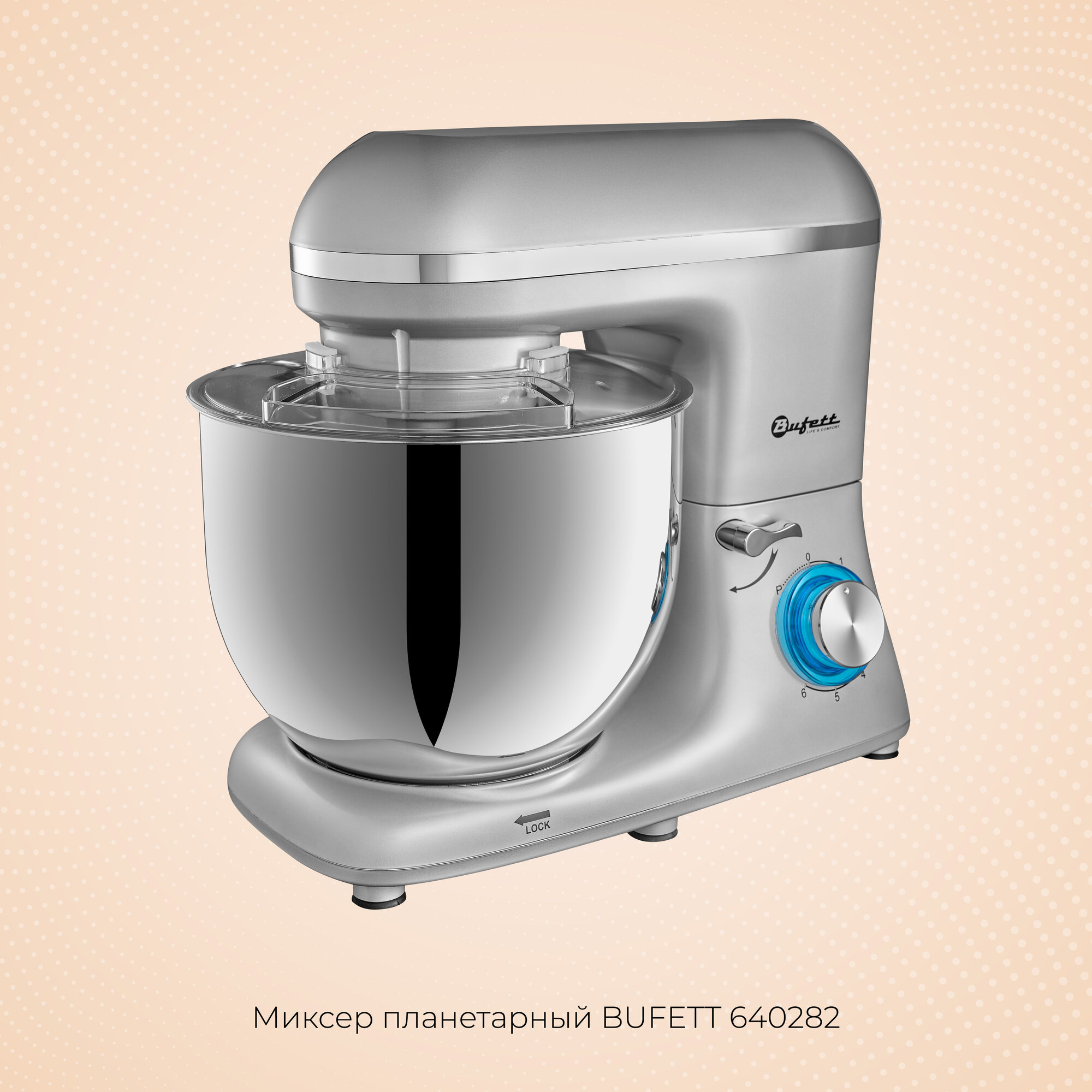 Миксер планетарный стационарный с чашей 5,5 литров BUFETT 640284, голубой