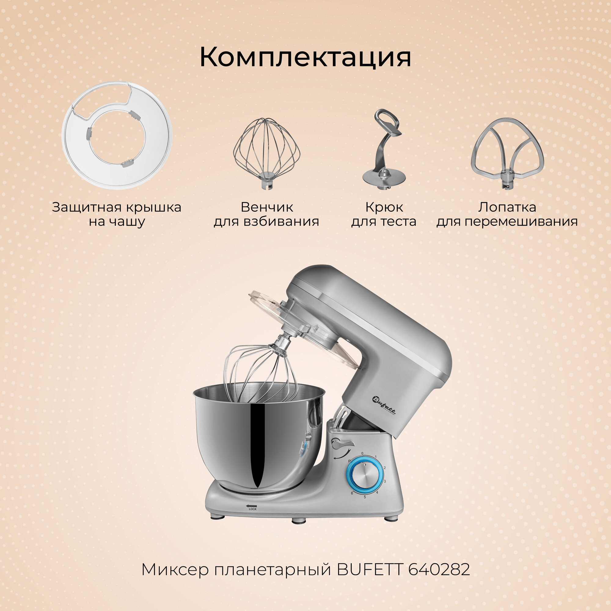 Миксер планетарный стационарный с чашей 7 литров и дисплеем BUFFET 640280, черный