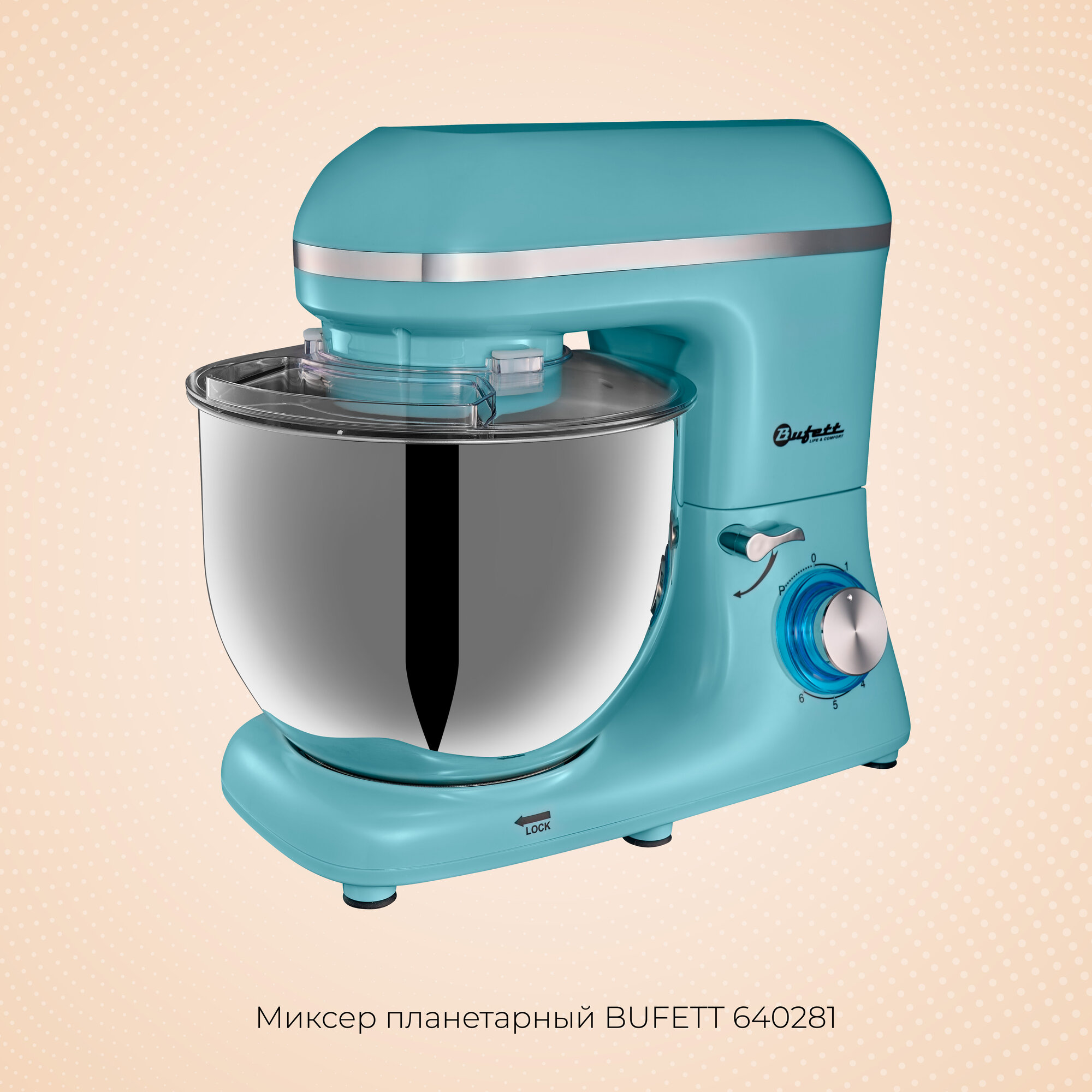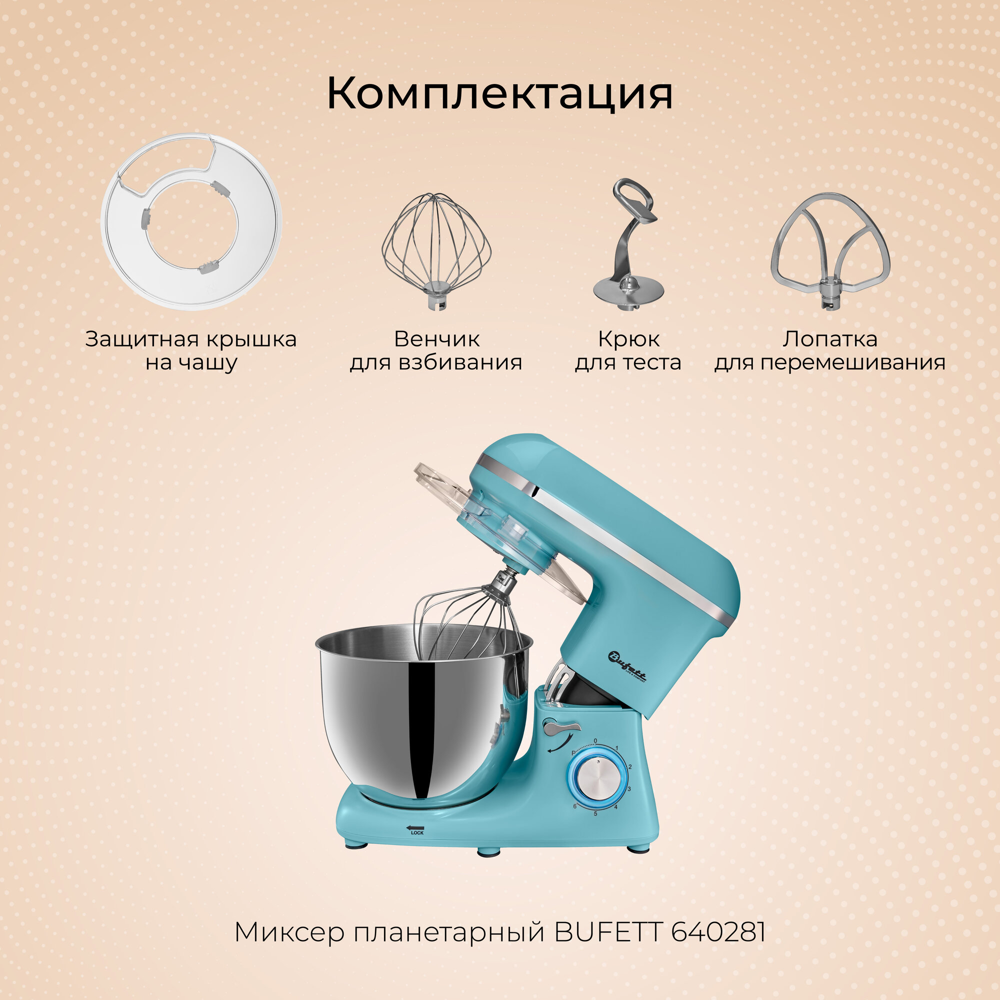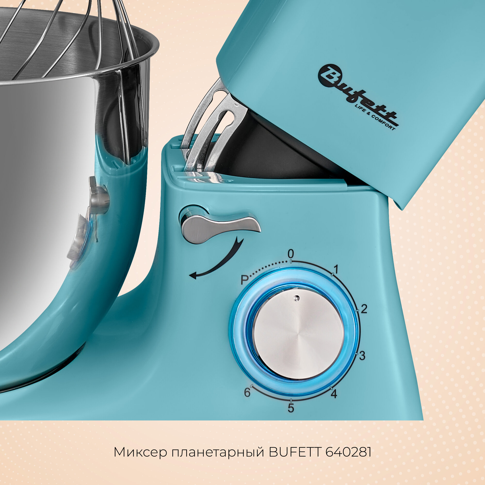 Миксер планетарный стационарный с чашей 5,5 литров BUFETT 640284, голубой