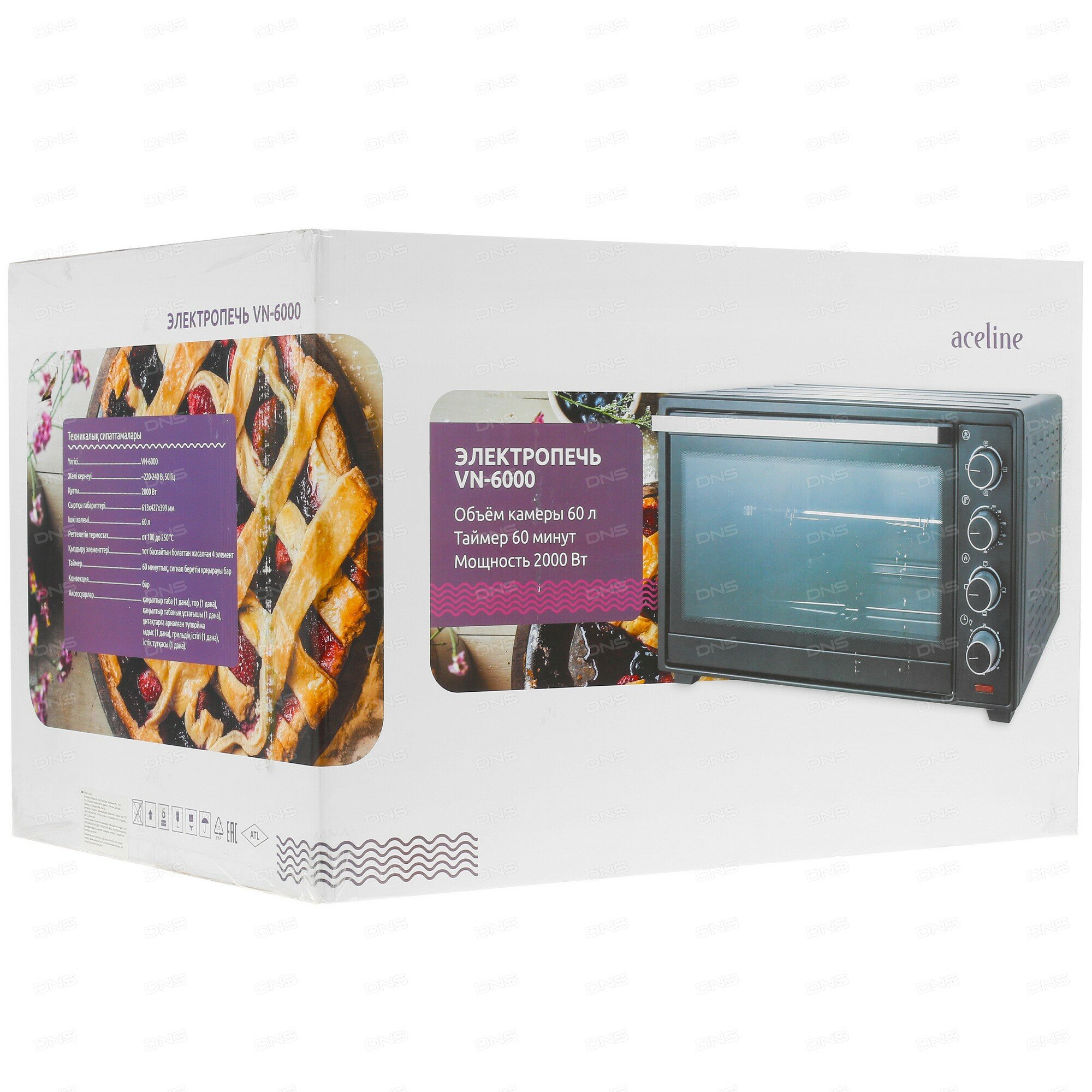 Мини-печь Aceline VN-6000, конвекция, 6 режимов, механическое управление, 60 л интересное: