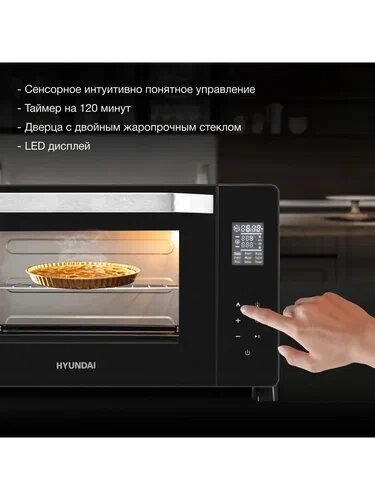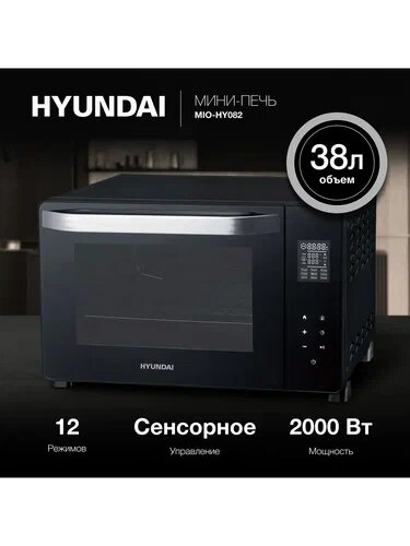 Мини-печь Hyundai MIO-HY082 black, сенсорное управление, 38л, 2кВт, интересное: