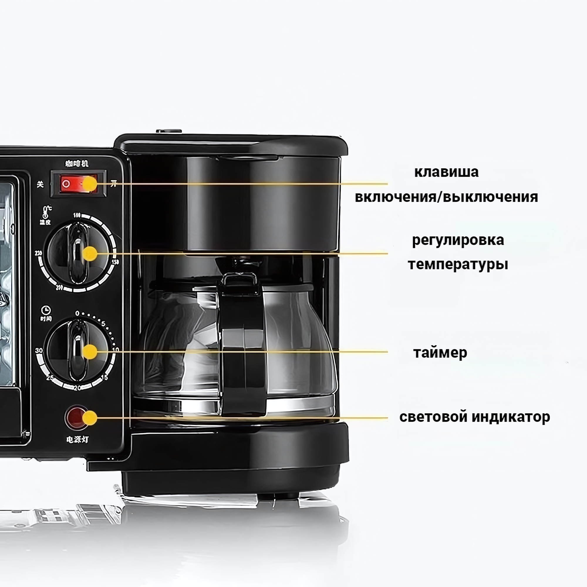 Многофункциональная мини-печь с грилем и кофеваркой, цвет черный интересное: