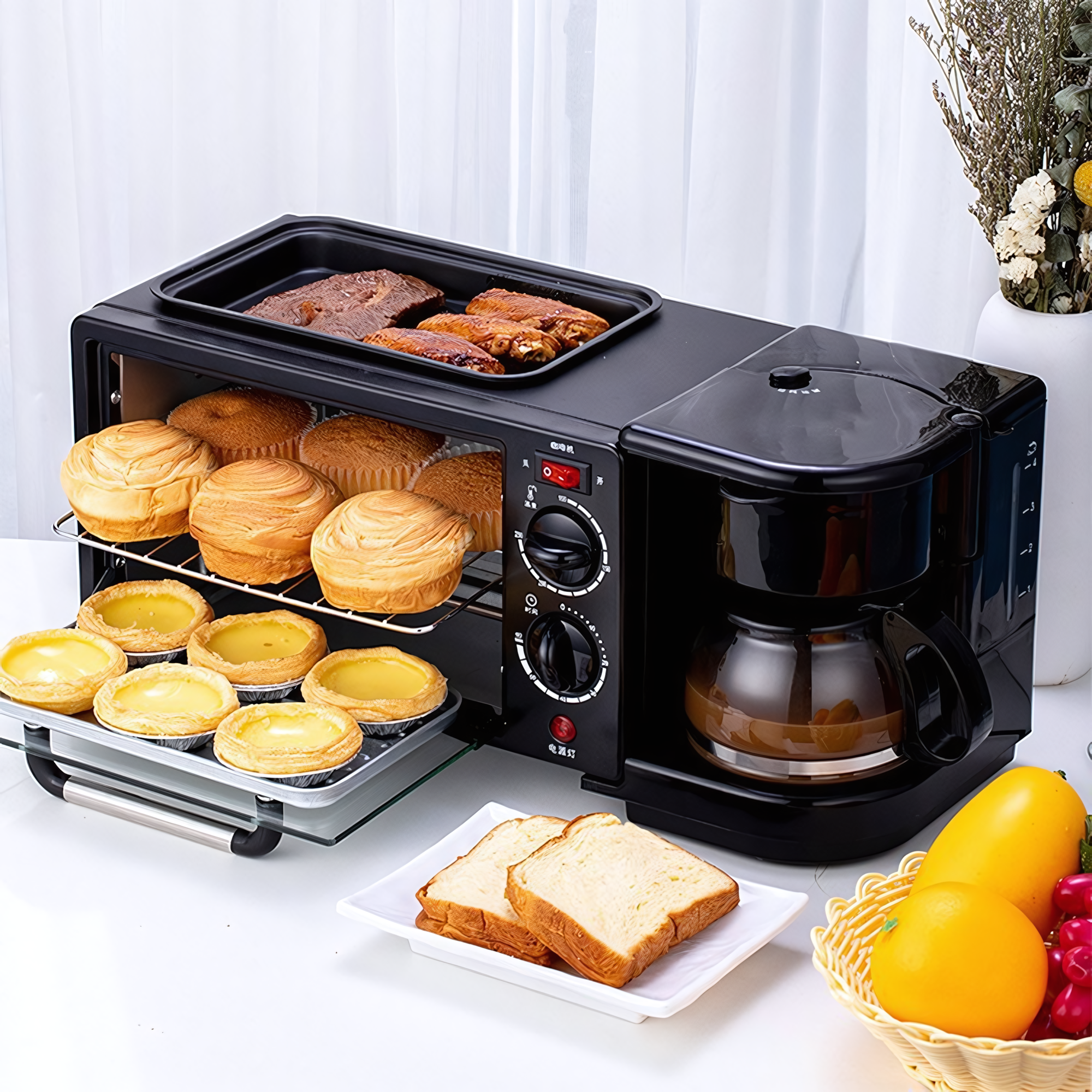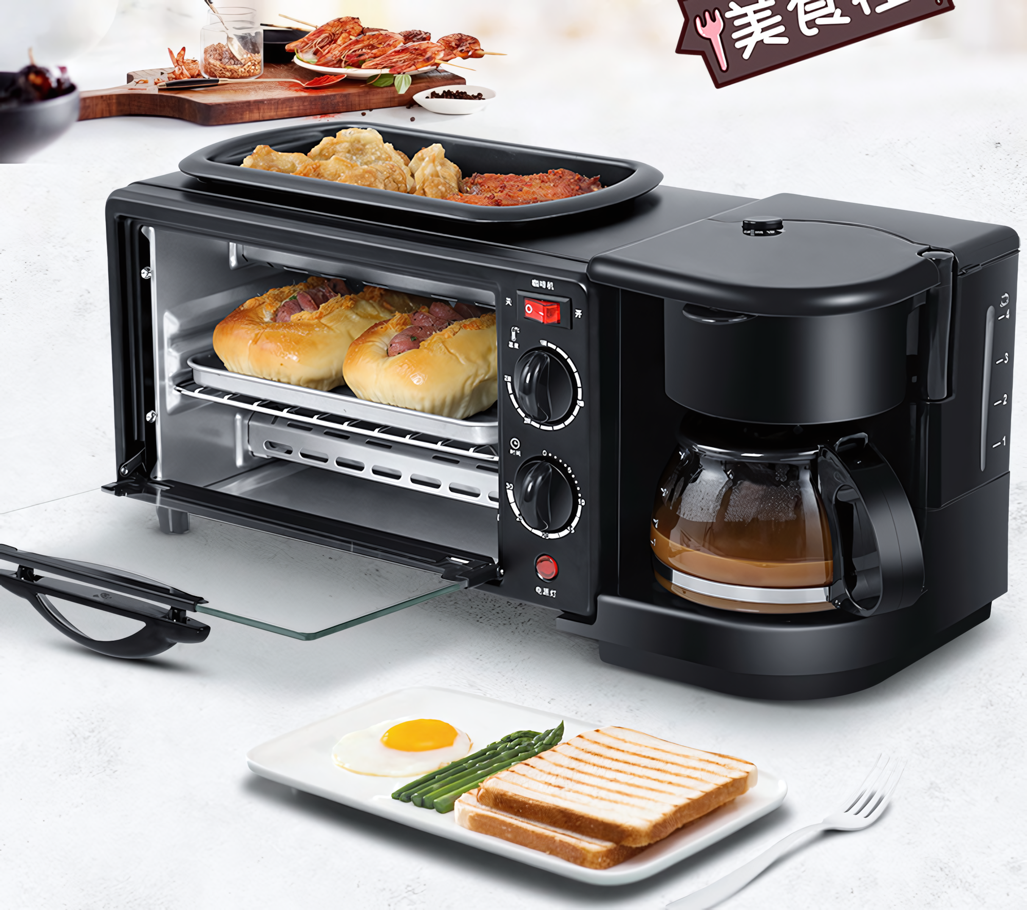Купить Многофункциональная мини-печь с грилем и кофеваркой, цвет черный