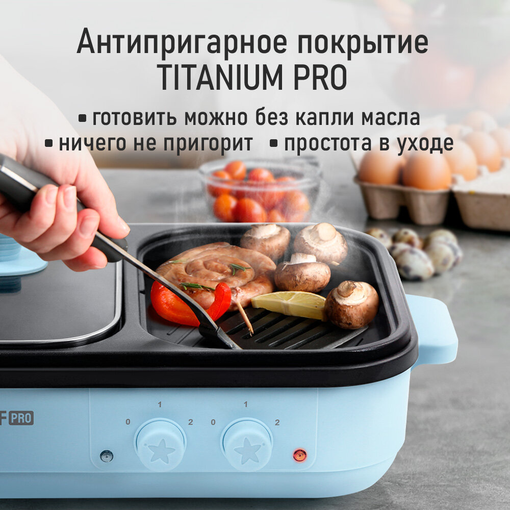 Гриль электрогриль 2 в 1 CHEF PRO CF-MC900A голубой аквамарин интересное: