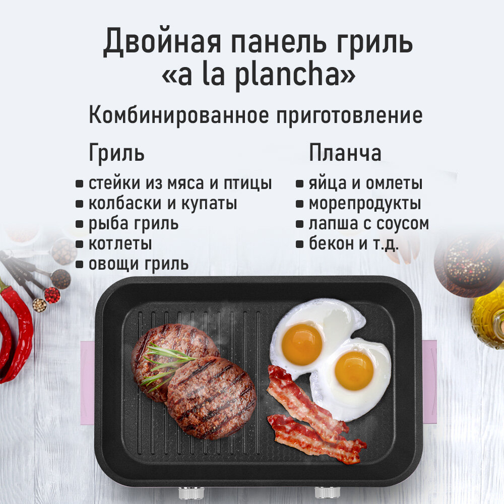 Гриль электрогриль 5 в 1 CHEF PRO CF-MC901A со сменными панелями розовый опал интересное: