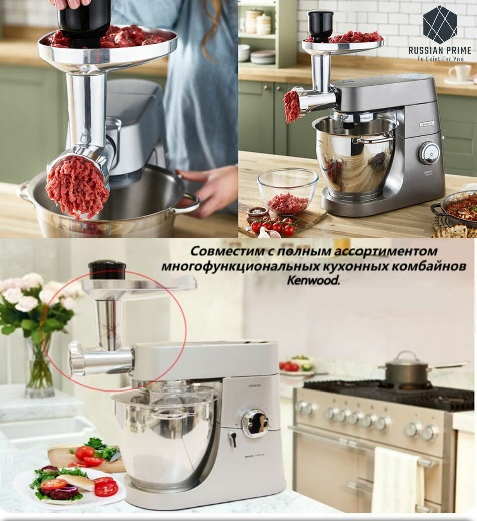 Насадка-Мясорубка Kenwood XJD, серебристый, съемный резак и насадки интересное: