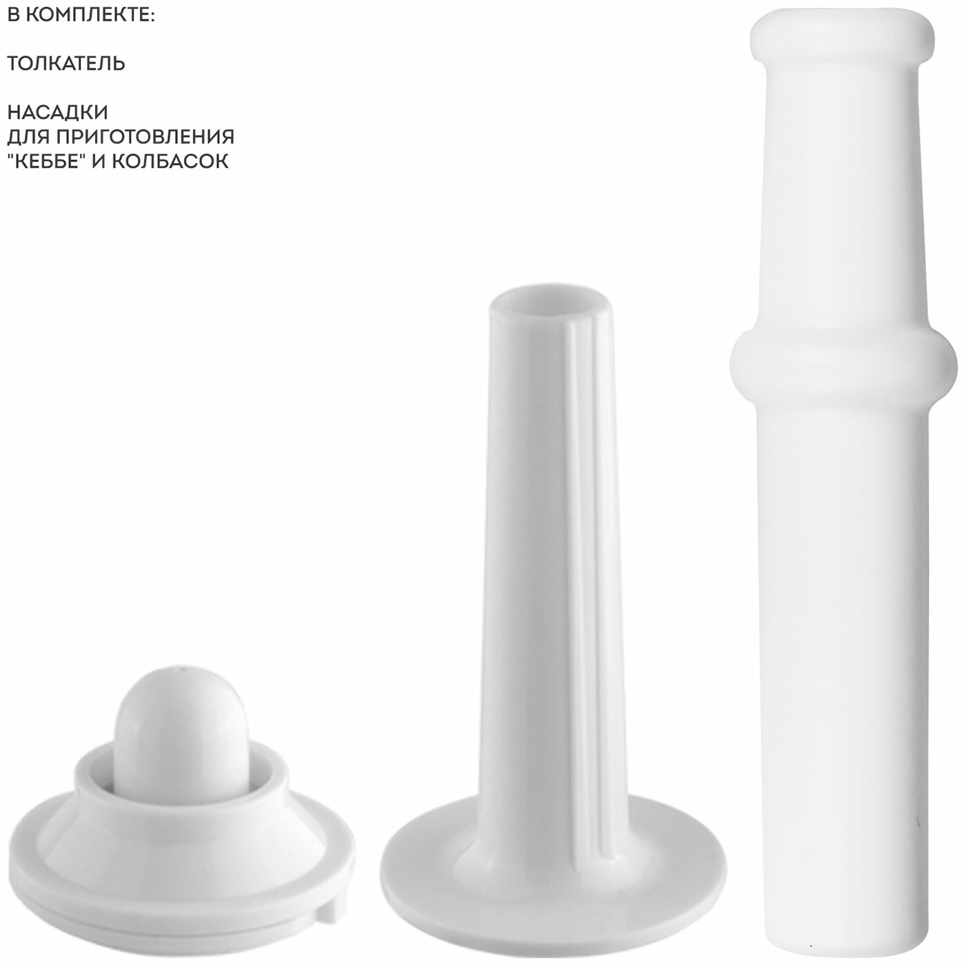 | Насадки | диск для фарша / насадка для кеббе / соковыжималка |