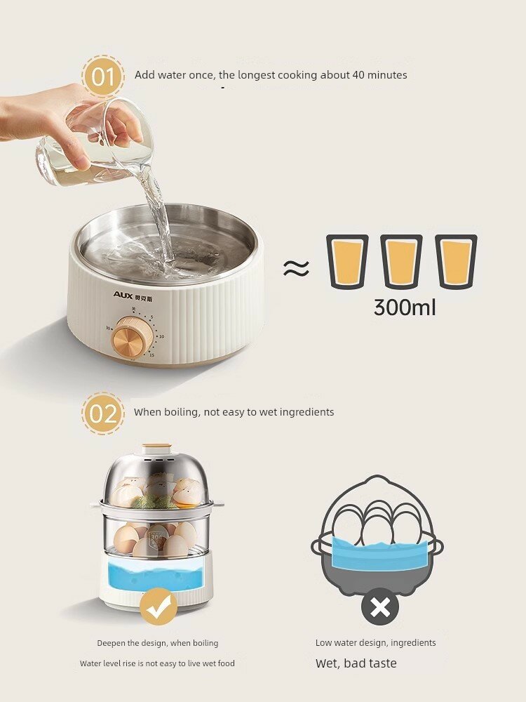 | Дополнительная информация | 304 нержавеющая сталь, 30-минутный таймер, мощность 350 вт, вместимость воды 300 мл, двухслойная конструкция, защита от сухого выгорания при высокой температуре |