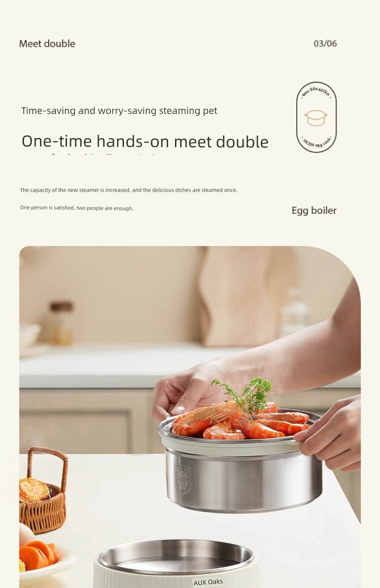 Пароварка для детского питания с таймером, нержавеющая сталь 304, двойной слой + углубленное шасси + пароварочная чаша 304